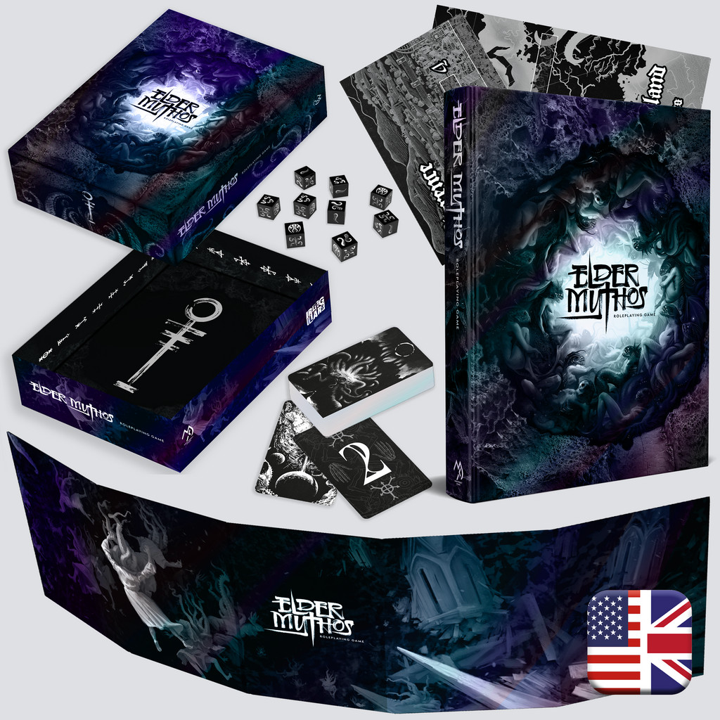Elder Mythos est un jeu de rôle d’horreur cosmique dans lequel les joueurs incarnent de terrifiantes Entités lovecraftiennes cherchant à détruire ou contrôler le monde. À travers la création collaborative de l’univers ou en choisissant un scénario, les joueurs tissent une conversation qui construit un véritable récit d’horreur cosmique.
