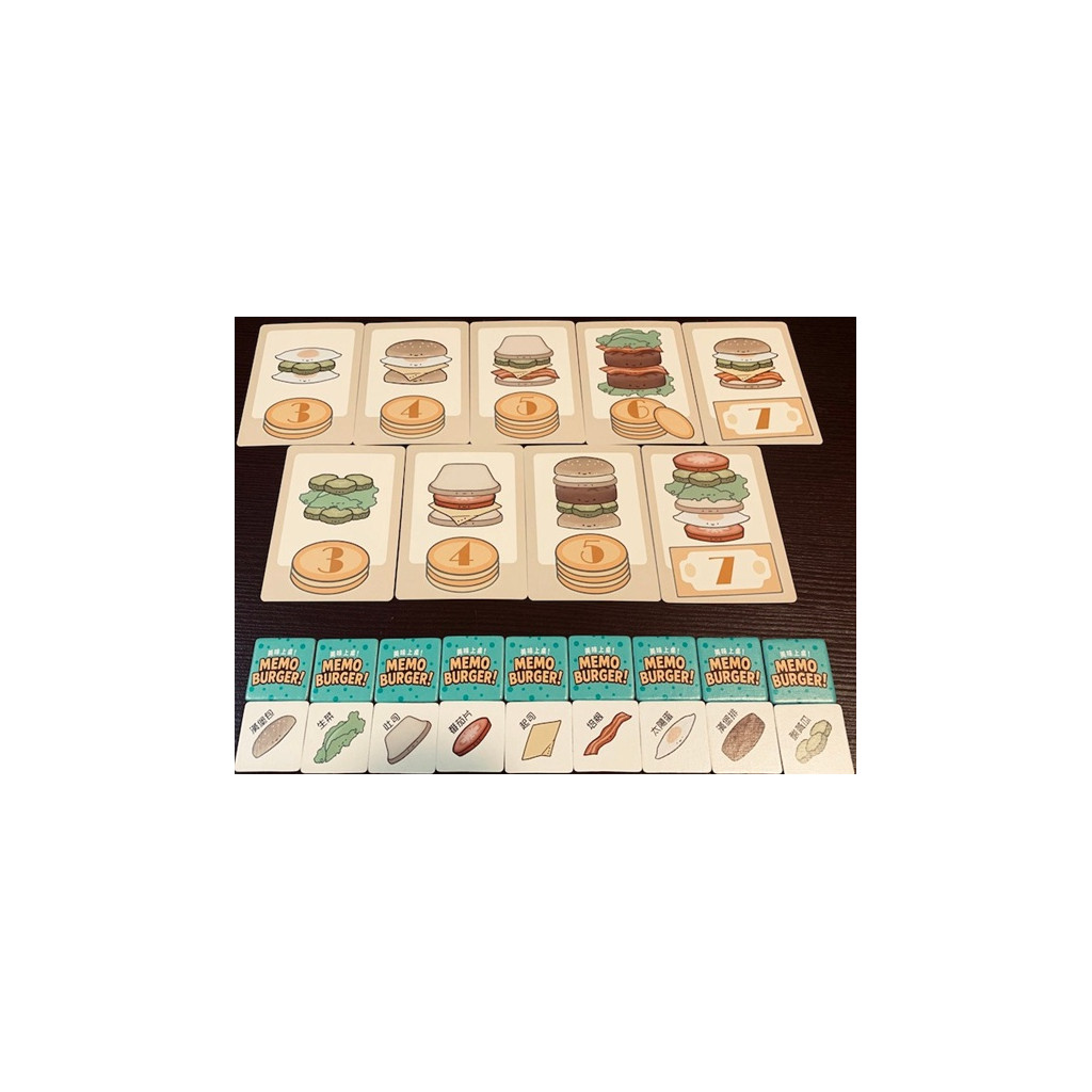 Memo Burger propose un mécanisme unique de « burgers empilés » : les burgers terminés restent sur la table face cachée, et leurs ingrédients peuvent être « pillés » par n'importe quel joueur pour honorer de futures commandes. Le premier chef à atteindre 12 points remporte la partie.