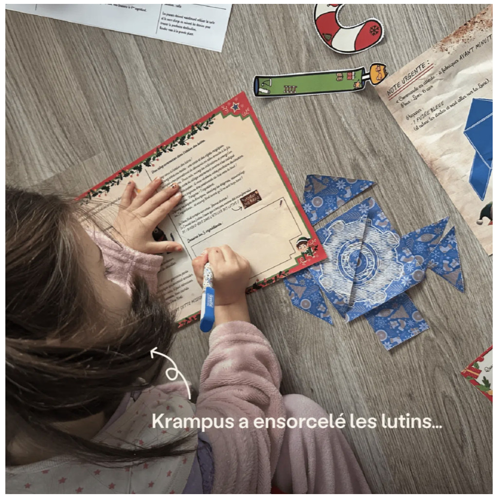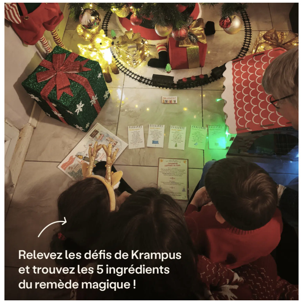 Invitez vos enfants à vivre une aventure de Noël pas comme les autres ! Transformez votre maison en un village enchanté et partez sur les traces des lutins ensorcelés. Résolvez des énigmes, suivez les indices laissés dans le village du Père Noël et brisez le sort lancé par Krampus pour sauver Noël avant qu’il ne soit trop tard ! L’activité parfaite pour célébrer Noël en famille.