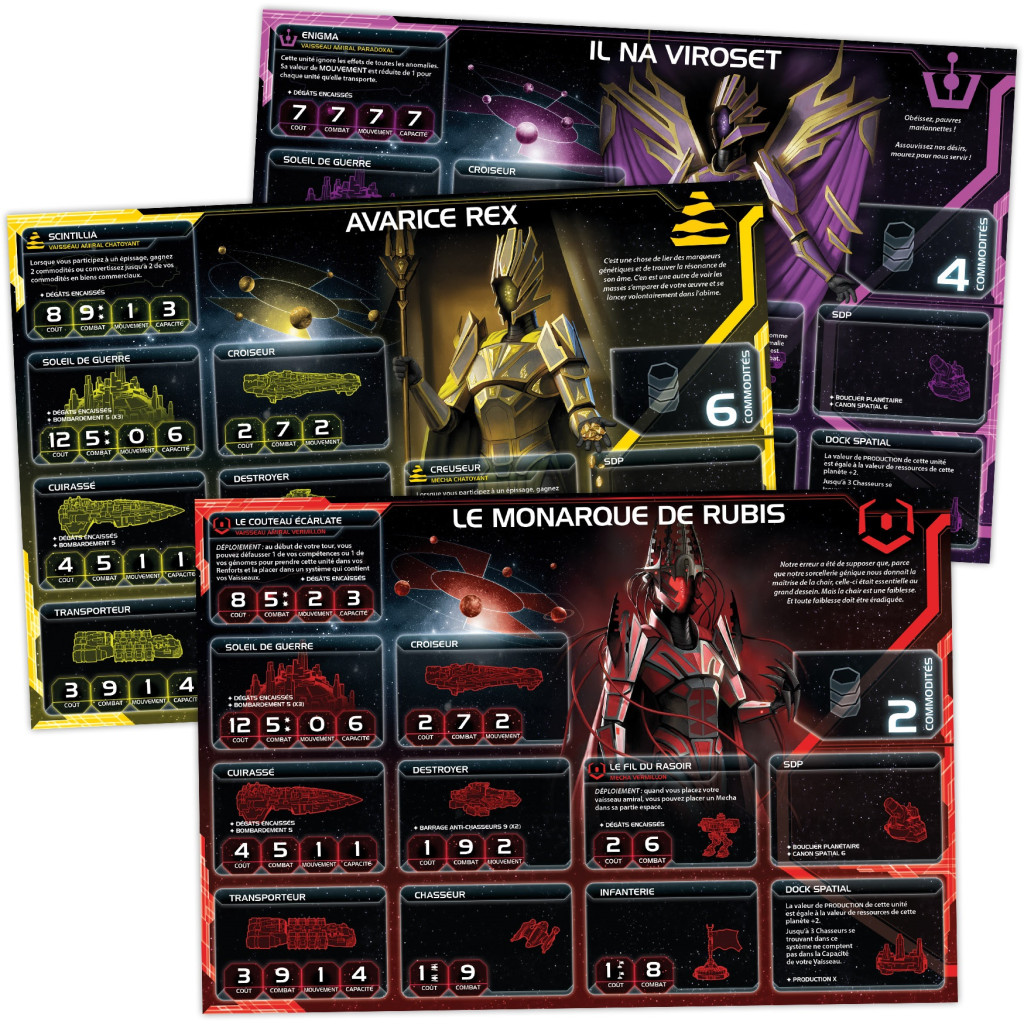 Redécouvrez Twilight Imperium avec tout le nouveau mode de jeu Crépuscule de la Galaxie ! Incarnez un roi Mahact fou à lier, créez votre propre faction à partir des vestiges d'une civilisation interstellaire et affrontez vos adversaires pour devenir le maître suprême de la galaxie. Dans ce mode de jeu, vous utiliserez des éléments uniques et appréhenderez Twilight Imperium sous un nouveau jour, à tel point que vous aurez l'impression de jouer à un autre jue !