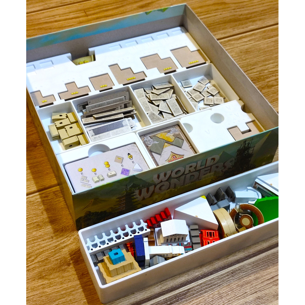 Cet insert de rangement compatible avec le jeu World Wonders et son extension Mundo, vous permet de ranger parfaitement vos tuiles, cartes et pions dans une seule boite. Les éléments qui composent l'insert ont été pensés pour une mise en place rapide du jeu.