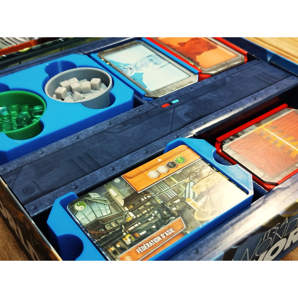 Cet insert de rangement compatible avec le jeu It's a Wonderful World, vous permet de ranger parfaitement vos tuiles, cartes (sans sleeve) et pions dans une seule boite. Les éléments qui composent l'insert ont été pensés pour une mise en place rapide du jeu.