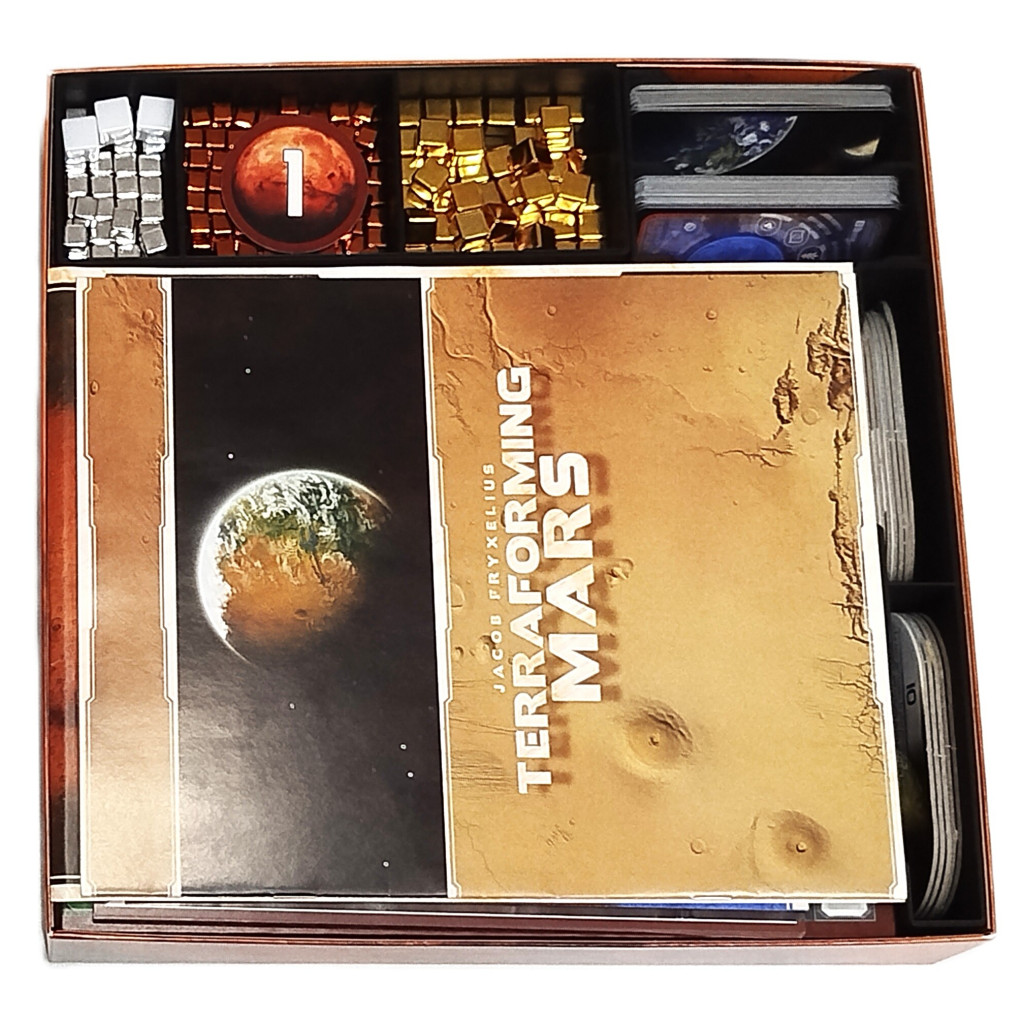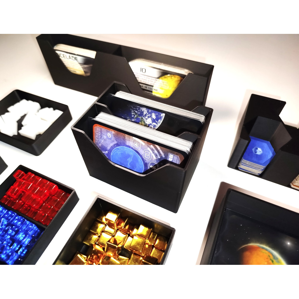 Cet insert de rangement compatible avec le jeu Terraforming Mars et ses extensions (Colonies, Turmoil, Venus next, Hellas et Elysium ), vous permet de ranger parfaitement vos cartes avec sleeves et jetons dans une seule boite. Conçu pour une mise en place rapide du jeu.