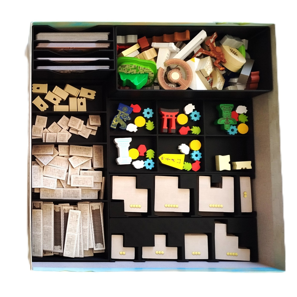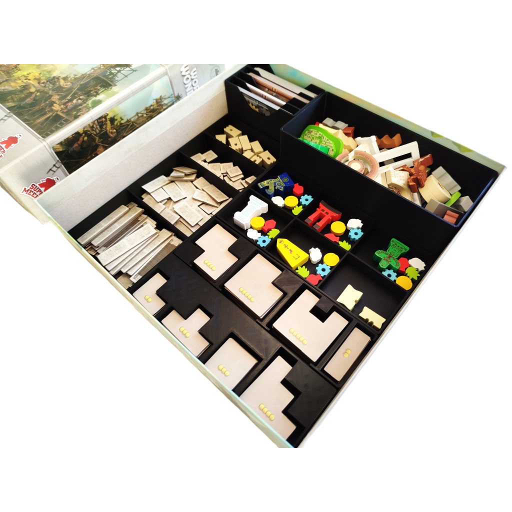 Conçu spécialement pour World Wonders et l'extension Mundo, cet insert optimise le rangement de toutes les pièces du jeu : tuiles, pions et cartes (avec ou sans sleeves), le tout dans une seule boîte. Chaque compartiment a été pensé pour une installation rapide et efficace.