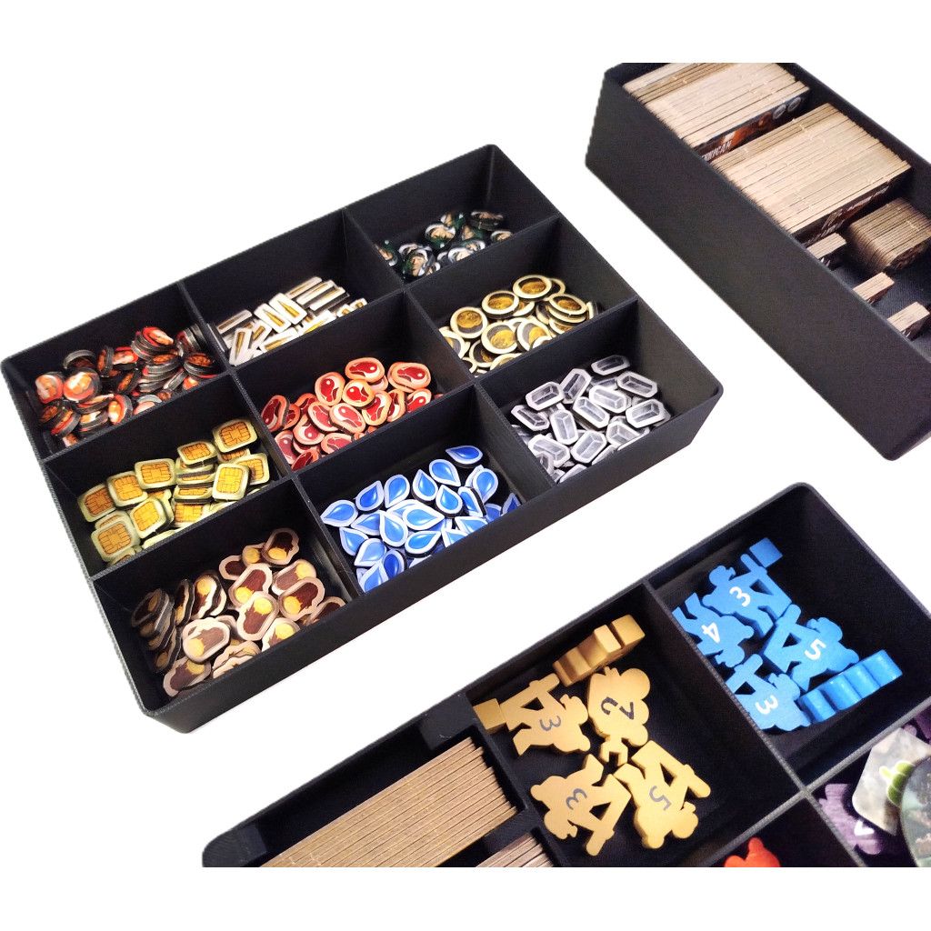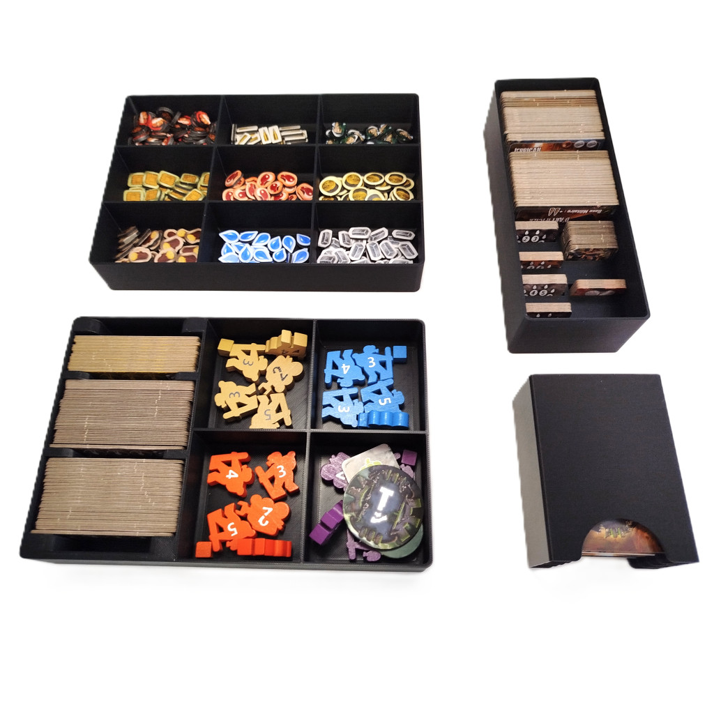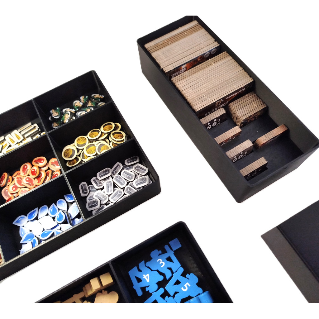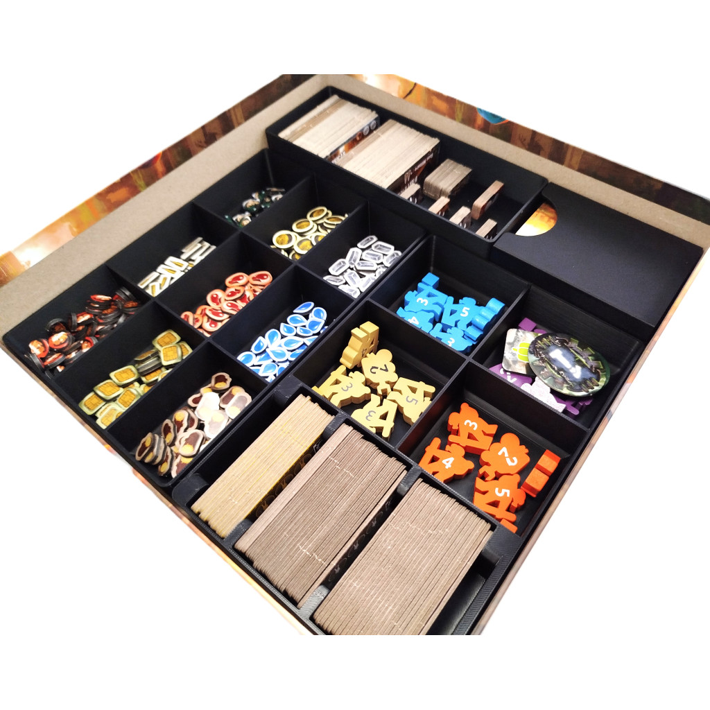 Conçu spécialement pour le jeu Outlive version complete edition (jeu + extension underwater), cet insert optimise le rangement de toutes les pièces du jeu : tuiles, cartes (avec ou sans sleeves) et pions, le tout dans une seule boîte. Chaque compartiment a été pensé pour une installation rapide et efficace.