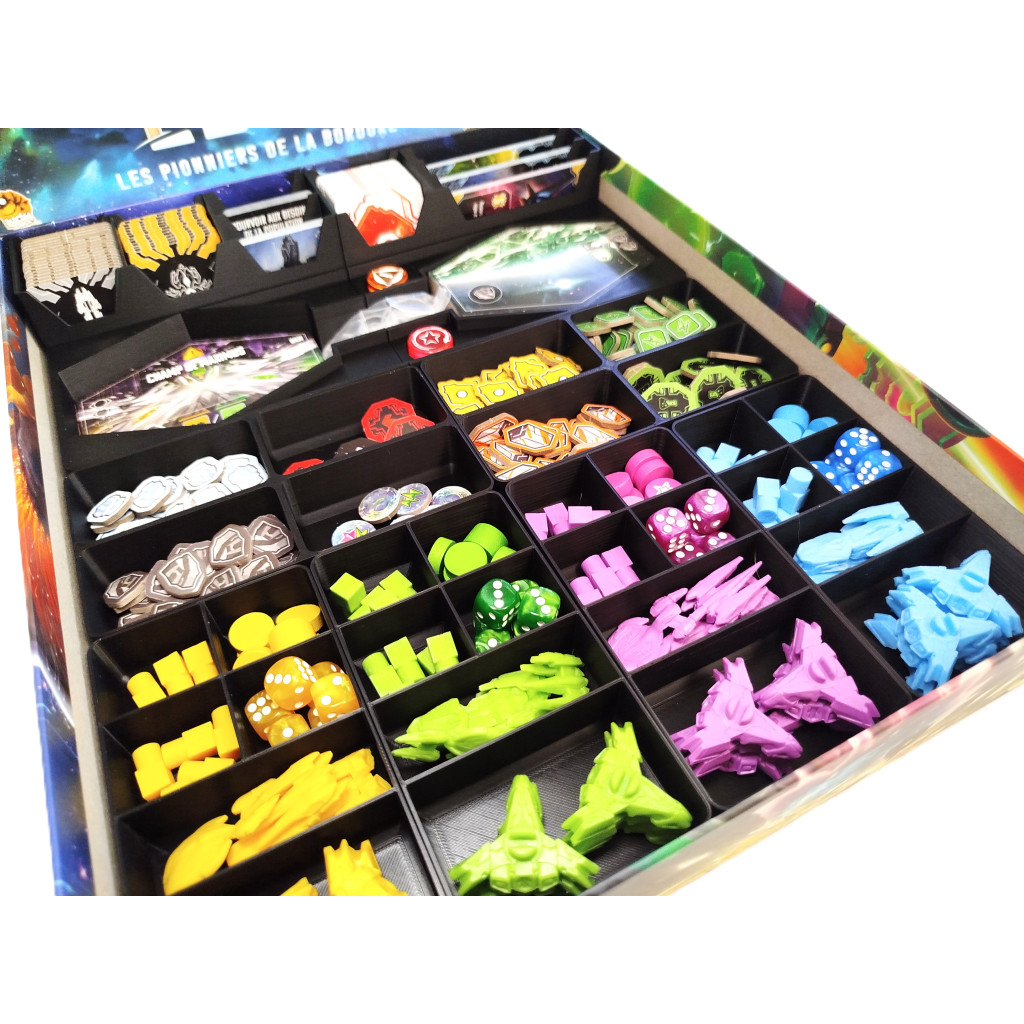 Conçu spécialement pour le jeu Andromeda's edge, cet insert optimise le rangement de toutes les pièces du jeu : tuiles, pions et cartes (avec ou sans sleeves), le tout dans une seule boîte. Chaque compartiment a été pensé pour une installation rapide et efficace.