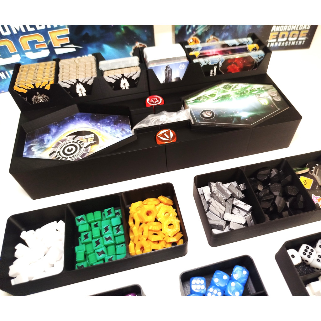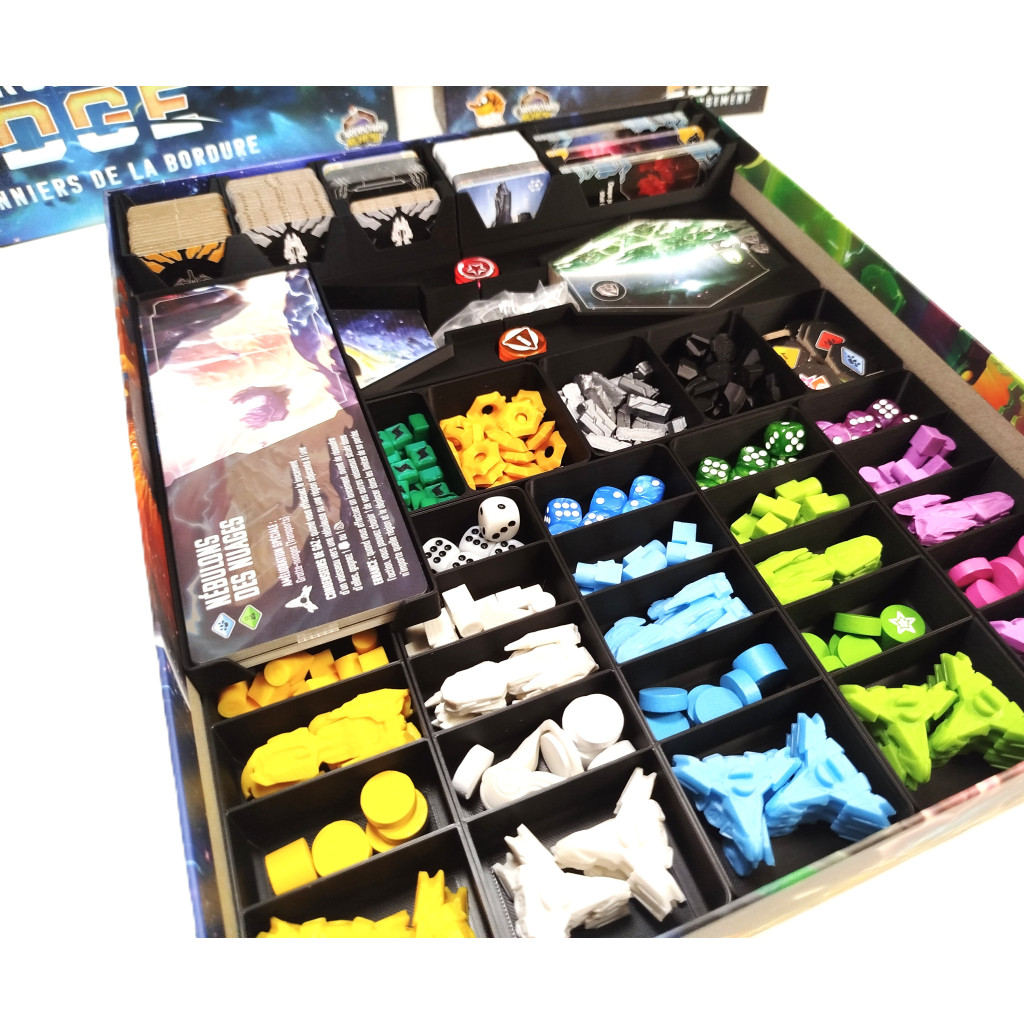 Conçu spécialement pour le jeu Andromeda's edge + l'extension Ebrasement, cet insert optimise le rangement de toutes les pièces du jeu : tuiles, pions et cartes (avec ou sans sleeves), le tout dans une seule boîte. Chaque compartiment a été pensé pour une installation rapide et efficace.