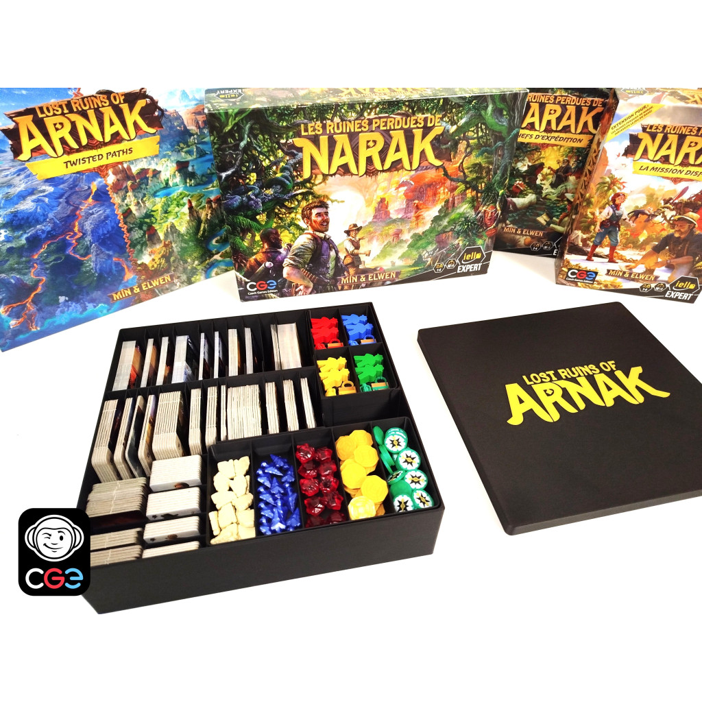 Conçu sur mesure pour le jeu Les Ruines perdues de Narak et ses trois extensions (Chefs d’expédition, Mission disparue et Sentiers sinueux), cet insert optimise le rangement de tous les éléments du jeu : tuiles, pions, cartes (avec ou sans sleeves) — le tout dans une seule boîte. Chaque compartiment est pensé pour une installation rapide, claire et efficace.