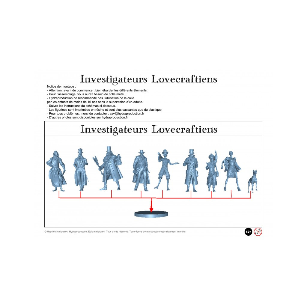 Dans cette boîte, vous trouverez de quoi assembler 9 Investigateurs Lovecraftien. Ces figurines sont compatibles avec tous systèmes de jeu utilisant des figurines 28-32 mm comme par exemple Dungeons & Dragons ou Chtulhu.