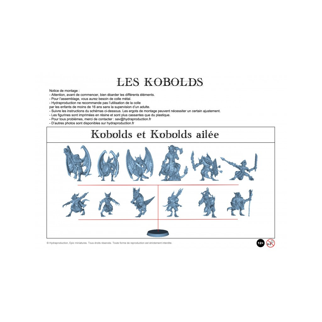 Dans cette boîte, vous trouverez de quoi assembler 12 Kobolds ainsi que leurs socles. Ces figurines sont compatibles avec tous systèmes de jeu utilisant des figurines 28-32 mm comme par exemple Dungeons & Dragons.
