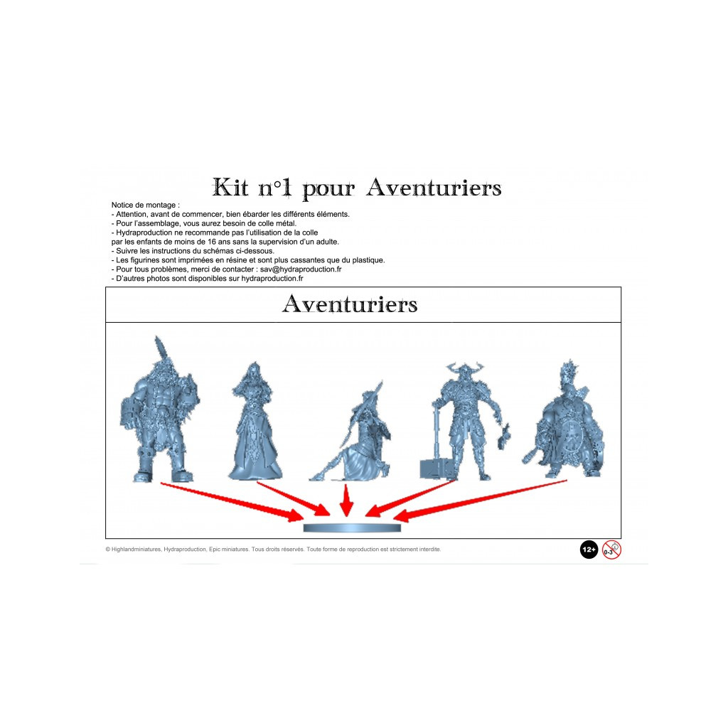 Dans cette boîte, vous trouverez de quoi assembler 5 Aventuriers ainsi que 7 dés pour le Jeu De Rôles. Ces figurines sont compatibles avec tous systèmes de jeu utilisant des figurines 28-32 mm comme par exemple Dungeons & Dragons.