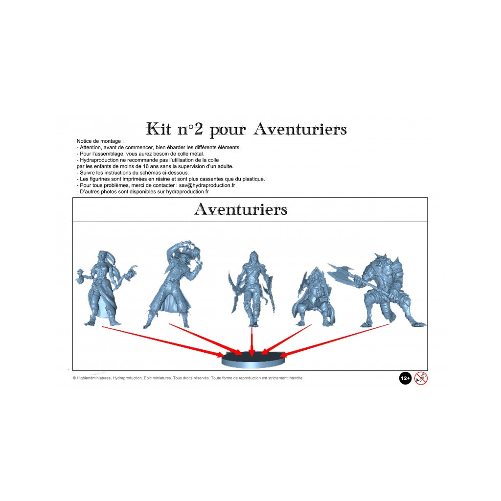 Dans cette boîte, vous trouverez de quoi assembler 5 Aventuriers ainsi que 7 dés pour le Jeu De Rôles. Ces figurines sont compatibles avec tous systèmes de jeu utilisant des figurines 28-32 mm comme par exemple Dungeons & Dragons.