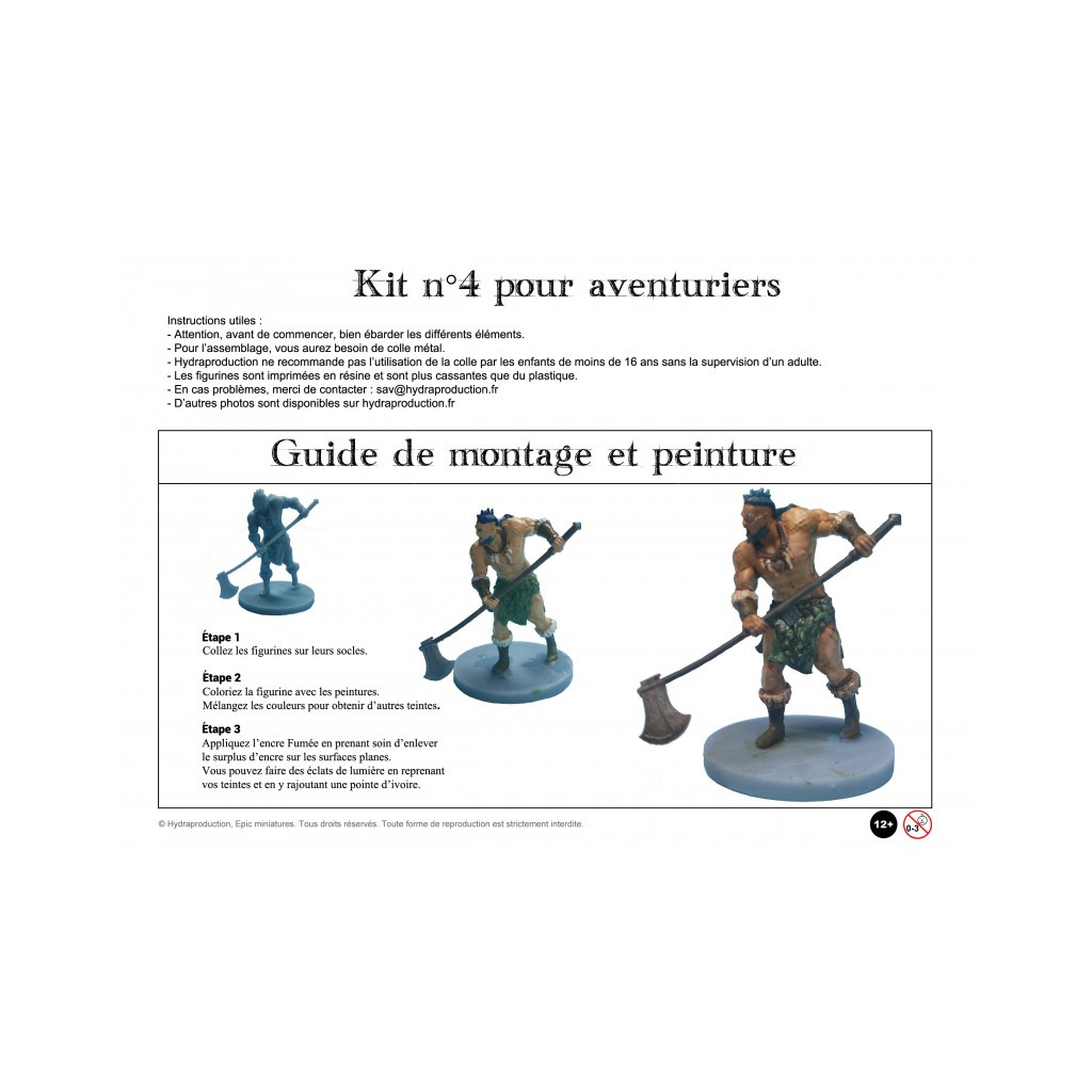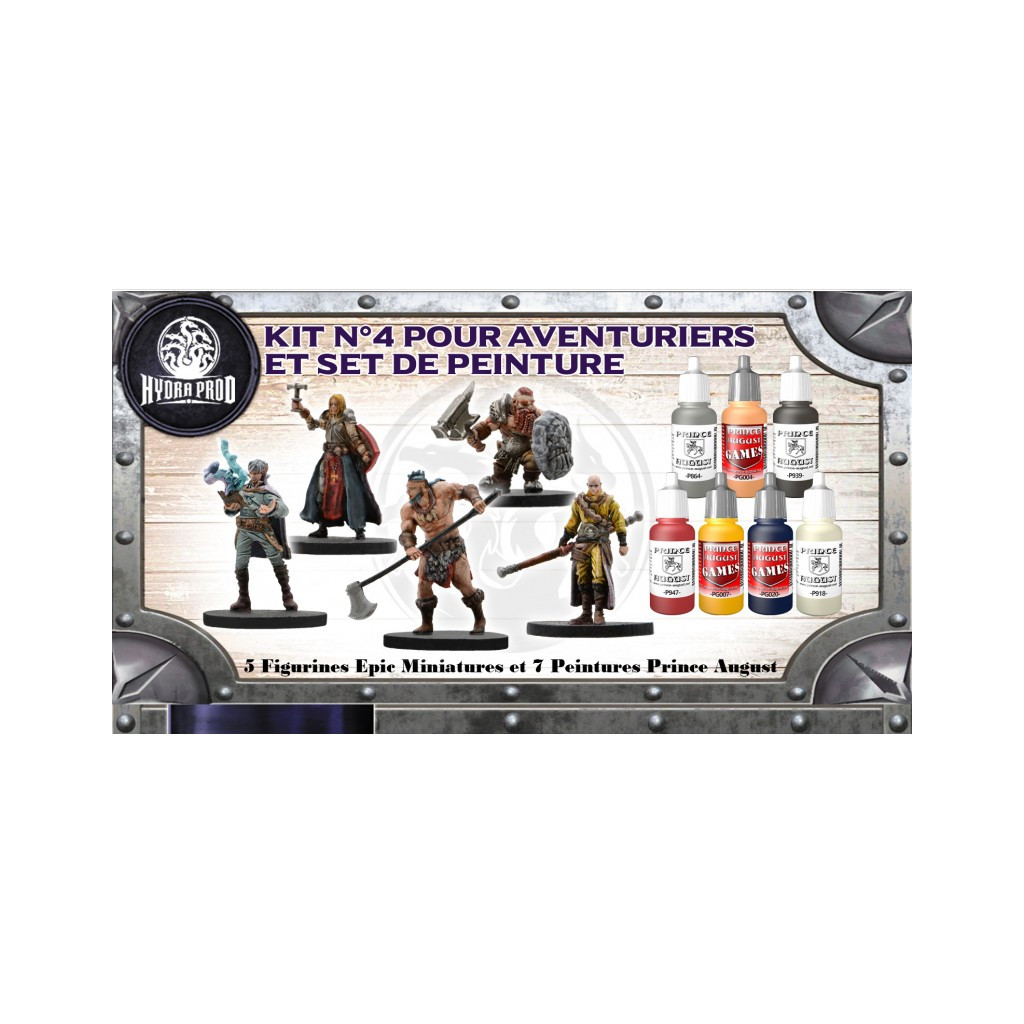 Dans cette boîte, vous trouverez de quoi assembler 5 figurines d'aventuriers avec leurs socles ainsi que 7 pots de peintures Prince August.