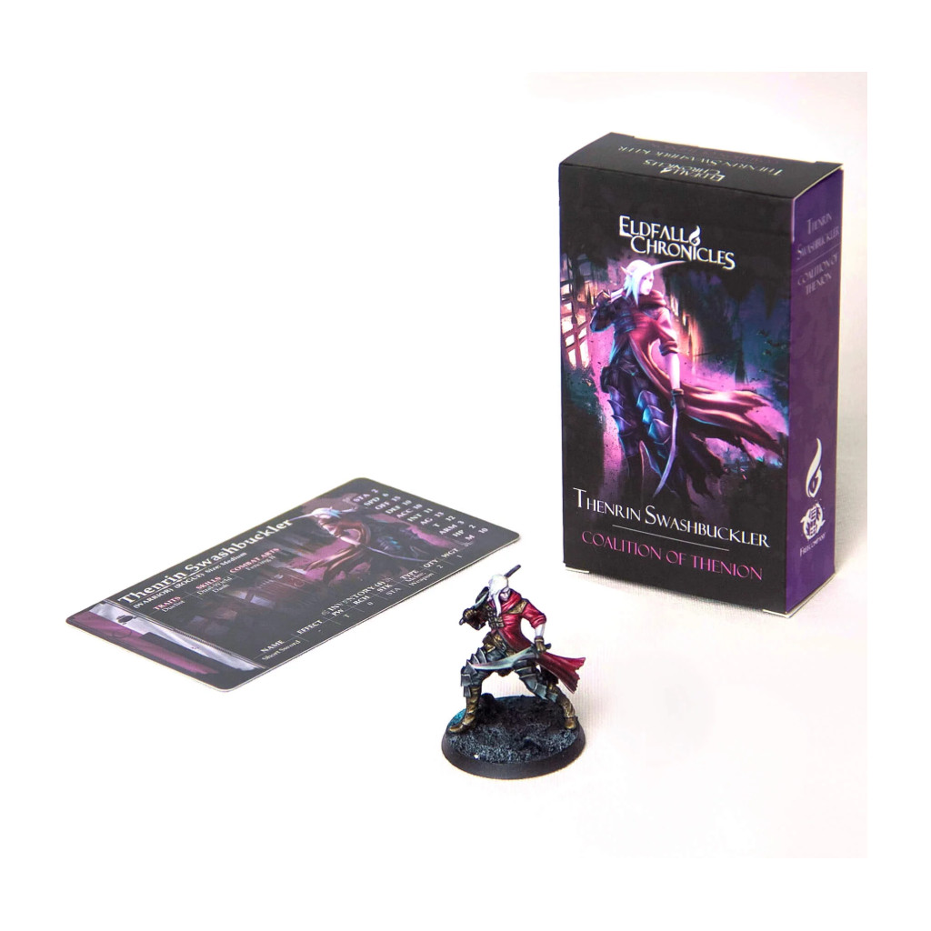 Ajoutez la figurine Eldfall Chronicles - Thenrin Swashbuckler à vos forces et explorez les terres sauvages à la recherche de connaissances anciennes.