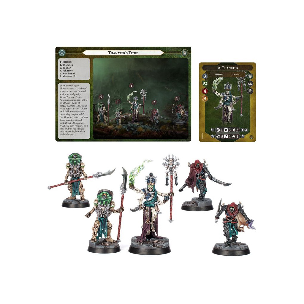 Ce kit en plastique permet d'assembler la Dîme de Thanatek, une bande complète utilisable dans les parties de Warhammer Underworlds. Il contient les cartes de combattant et les cartes de charte de la bande.