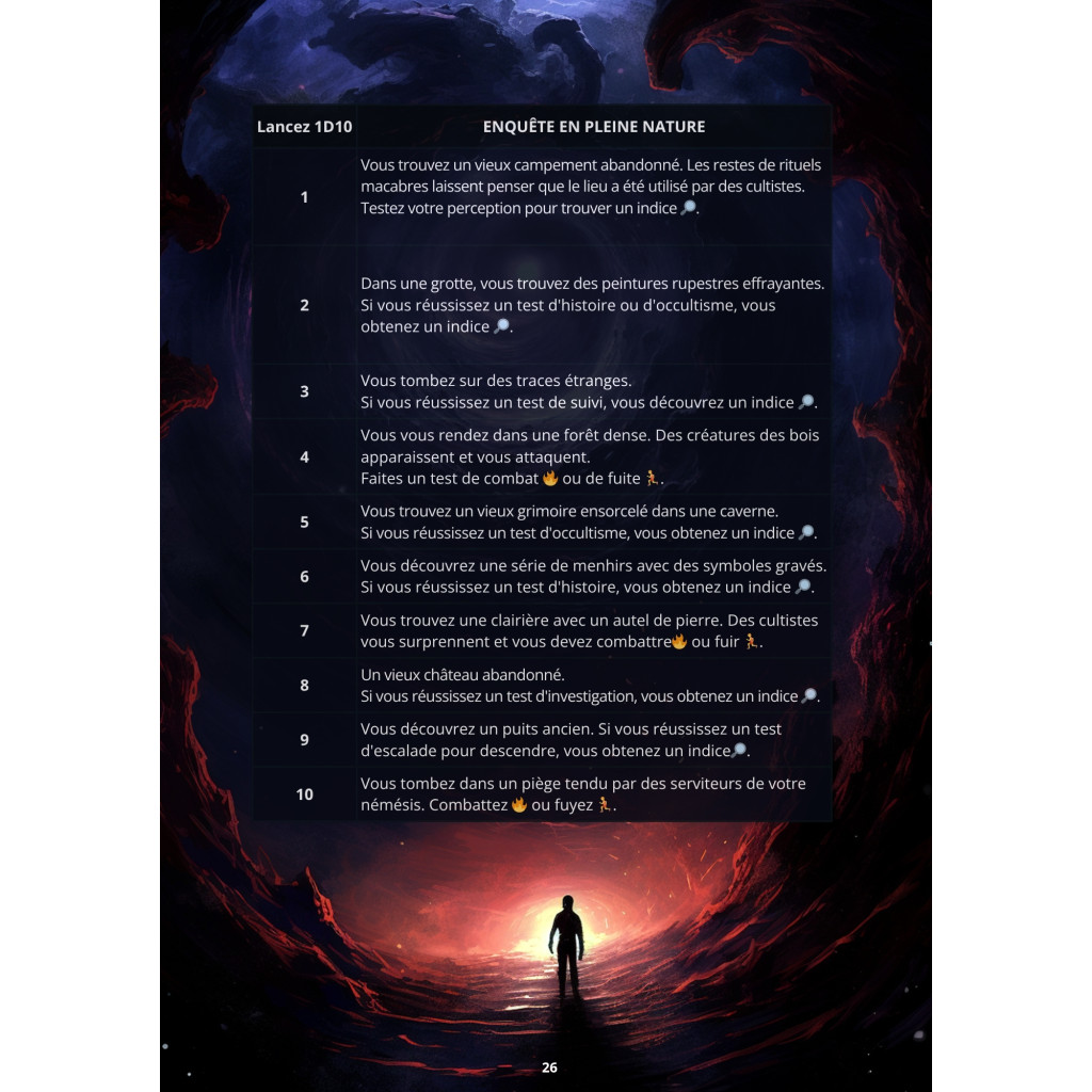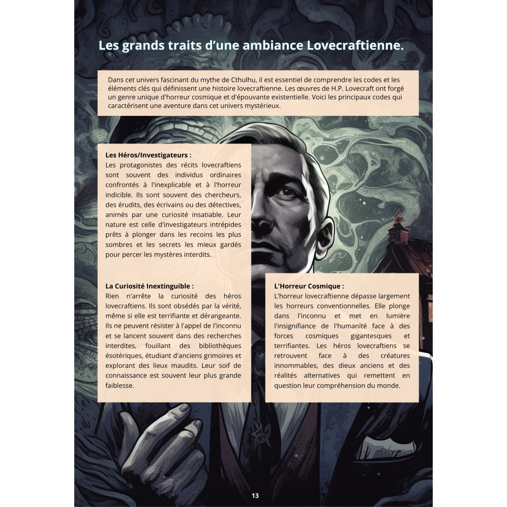 Contenu complet 34 pages richement illustrées, tables aléatoires variées, conseils narratifs, atmosphère lovecraftienne authentique.