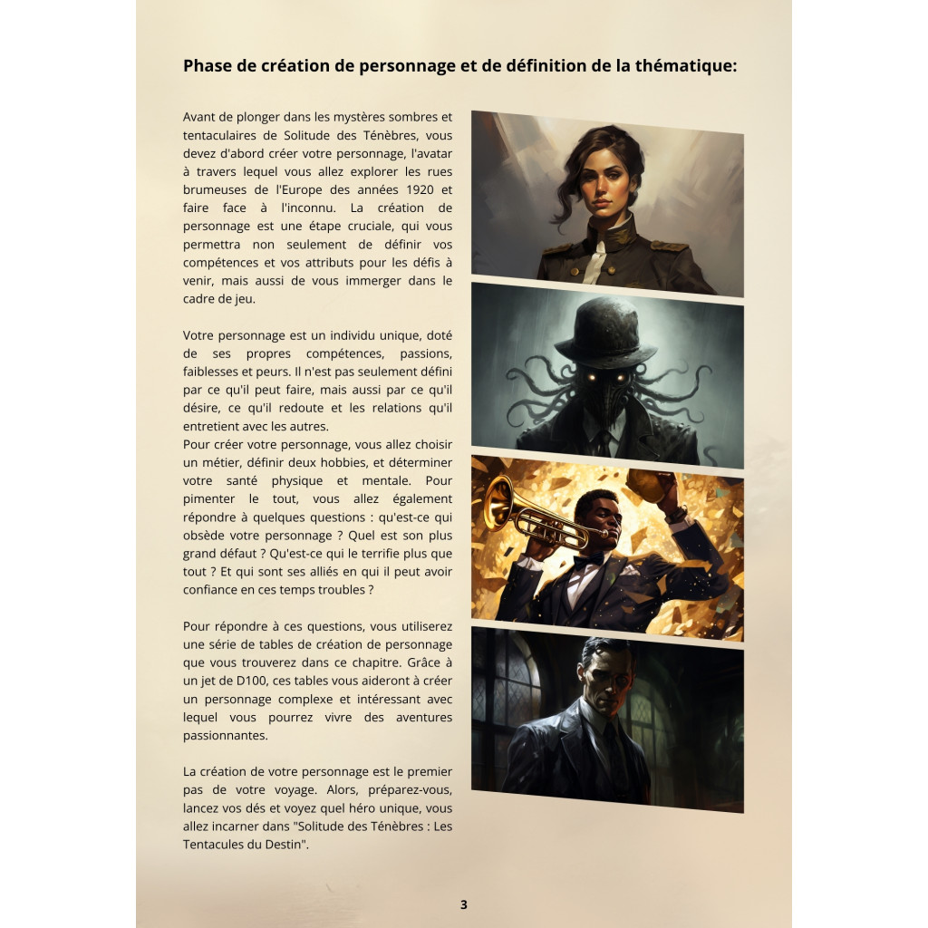 Solitude des Ténèbres : Les Tentacules du Destin est un jeu de rôle solo lovecraftien qui vous transporte dans l'Europe brumeuse des années 1920.