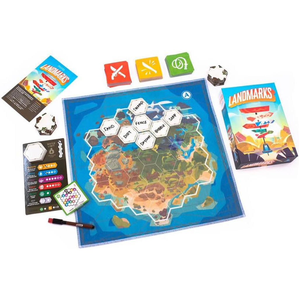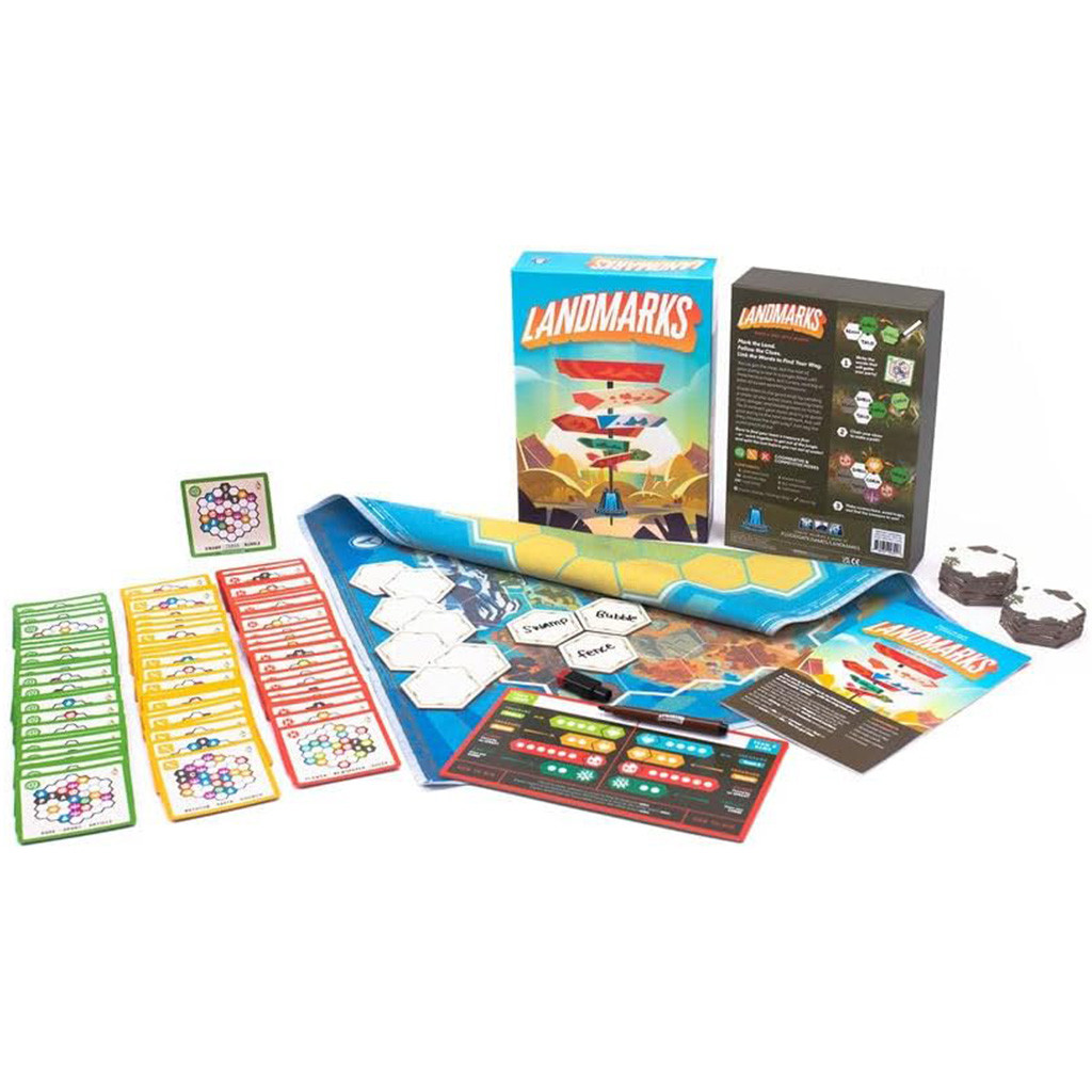 Landmarks est un jeu de mots basé sur des chemins cachés et des indices ingénieux. Votre groupe est perdu dans une jungle insulaire et compte sur vous pour le guider vers la sécurité… et le trésor !