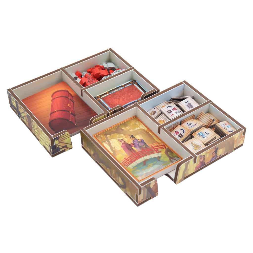 Le Rangement pour Boîte Folded Space - Tianxia se place dans la boîte du jeu afin de mettre en place et rendre plus lisibles les parties, chaque composant étant rangé dans son contenant.