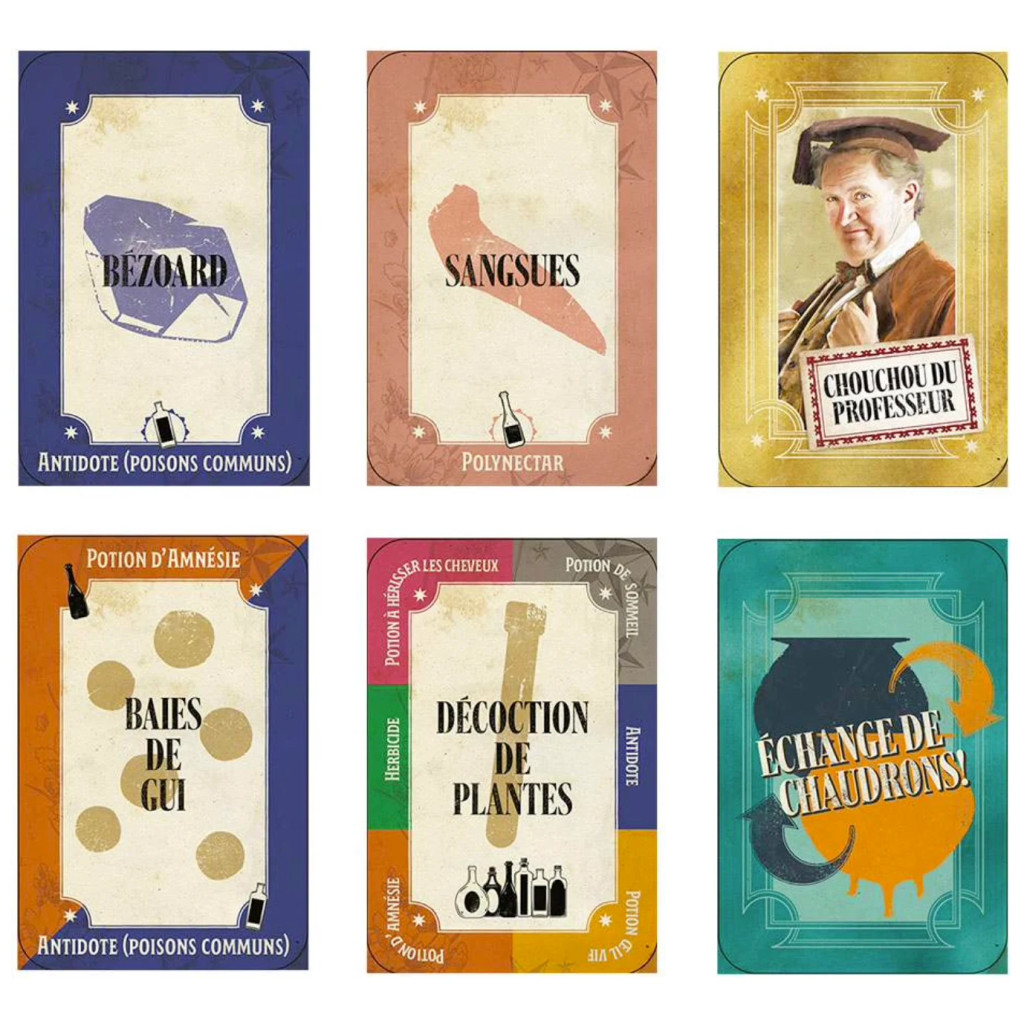 Les joueurs réunissent les ingrédients nécessaires à la confection de leurs potions en piochant les cartes dans l’espace de jeu, dans la pioche ou directement dans le jeu de leurs adversaires (attention à la carte Échange de chaudrons !) -et peuvent même choisir un ingrédient grâce à la carte Chouchou du professeur.