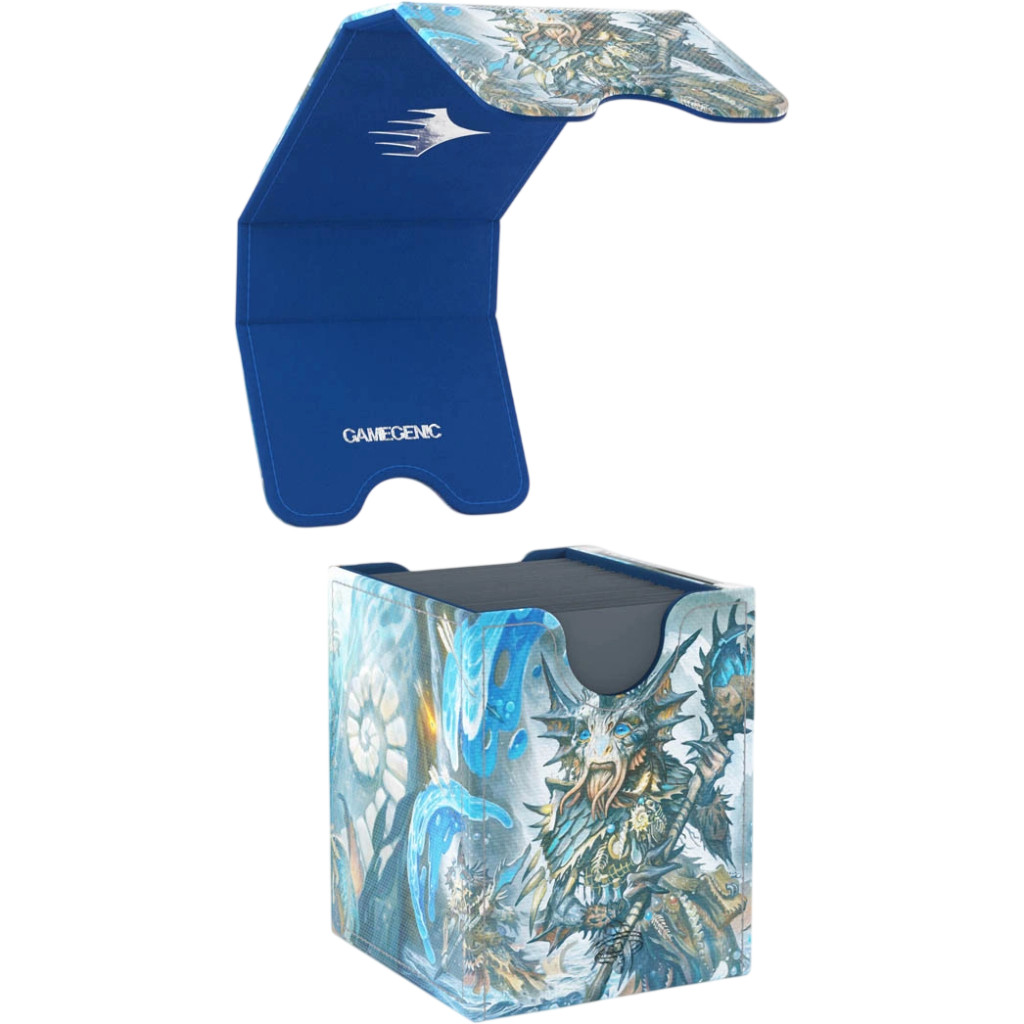 Le Squire PLUS 100+ XL est une boîte de rangement premium sous licence officielle Magic: The Gathering, imprimées en couleurs sur une surface Armorfyber pour un rendu visuel percutant. Elle propose une véritable innovation : afficher votre carte du dessus ou votre Commandant sans ouvrir la boîte.