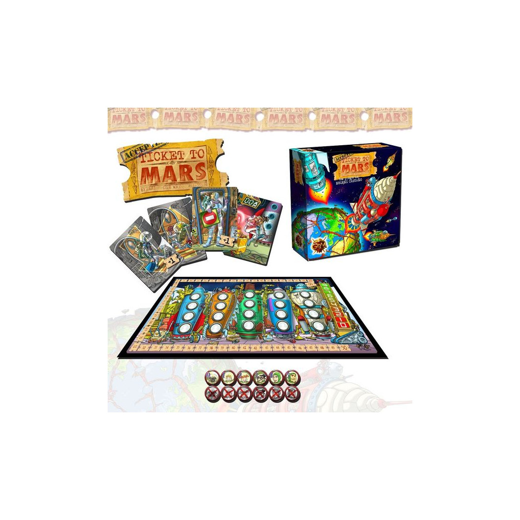 Dans Ticket to Mars, chaque joueur doit évacuer dans les dernières fusées quittant la Terre, le plus de personnes possibles : mais pas n'importe qui.