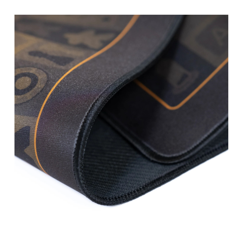 La surface supérieure en polyester lisse et dense assure une glisse parfaite pour vos cartes, tuiles, figurines et accessoires. Les lancers de dés sont plus feutrés et la lisibilité du plateau s’en trouve améliorée.