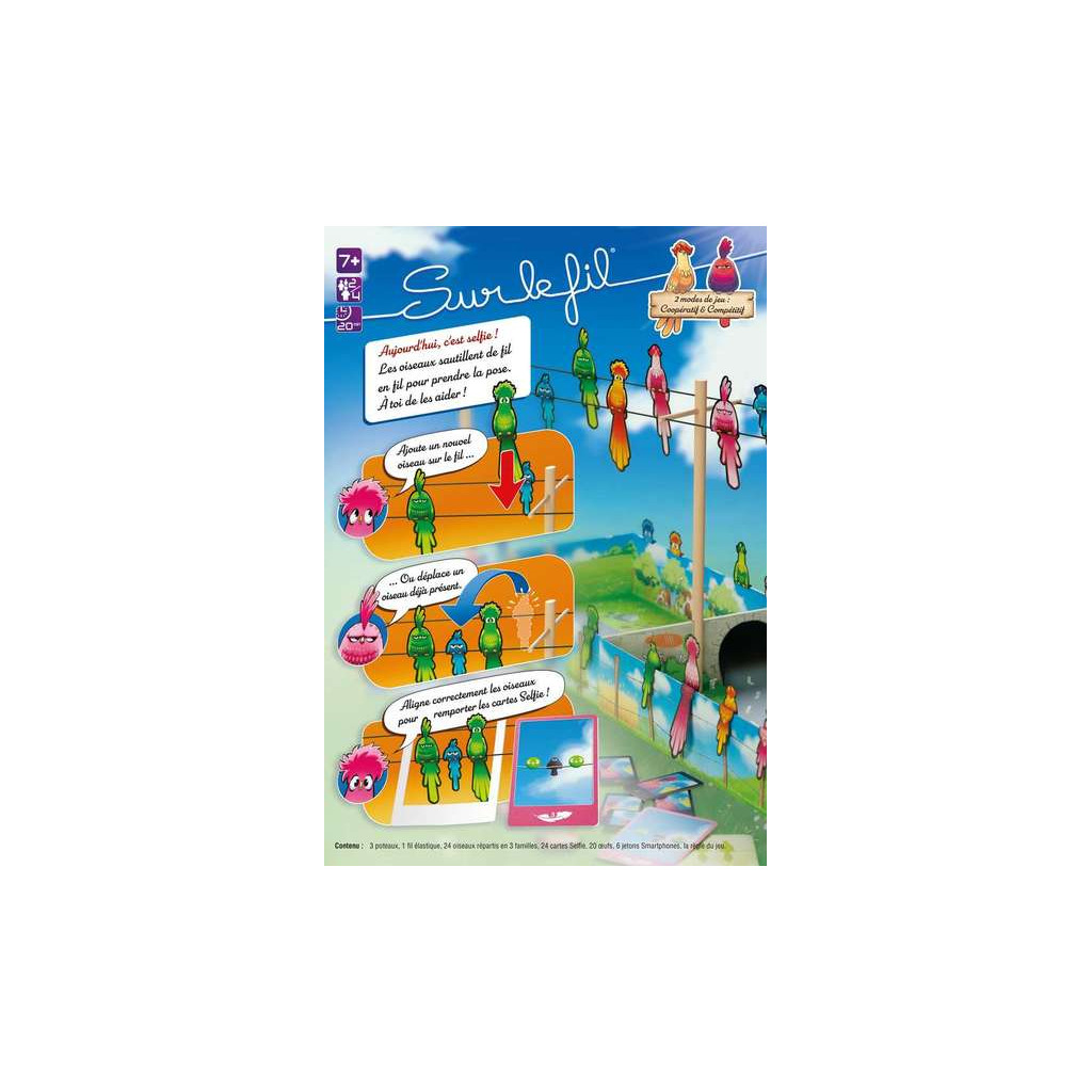 Tout le monde aime se prendre en selfie… et les oiseaux ne font pas exception ! Les voici qui sautillent joyeusement de fil en fil avant d'immortaliser leurs poses au travers de photos souvenir délirantes. Aide-les à reproduire les figures demandées par les cartes Selfie et marquer un maximum de points.