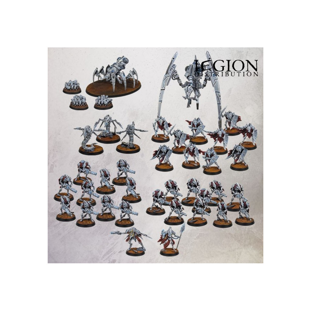- Figurines Robot Legion : 1 Overseer, 1 Technomancer, 10 Guardians avec Boucliers, 10 Robot Warriors avec Fusils à Gauss, 3 Bot Swarms, 1 Forge Spider