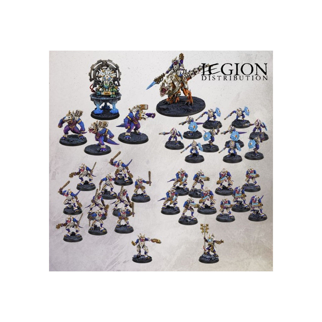 - Figurines Saurian Starhost : 1 Saurian Veteran, 1 Gecko Psychic, 3 Gators, 10 Geckos avec Boucliers, 10 Saurians avec Pistolets et Armes de Corps à Corps
