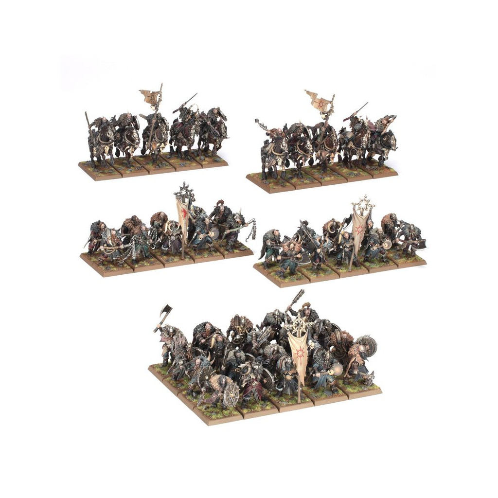 Cette boîte bien remplie est idéale pour débuter une nouvelle collection de Guerriers du Chaos, ou pour étoffer une armée existante, à lâcher contre l'adversaire dans les parties de Warhammer: The Old World. Les Cavaliers Maraudeurs mènent la charge, en tirant parti de leur vitesse pour prendre de flanc et harceler les unités ennemies. Ils sont suivis par les Maraudeurs du Chaos, des combattants frénétiques venus des désolations froides du Nord. C'est dans cette boîte que vous aurez la première occasion de mettre la main sur les nouvelles figurines de Cavaliers Maraudeurs et de Maraudeurs du Chaos, et elle n'est disponible que dans la limite des stocks.