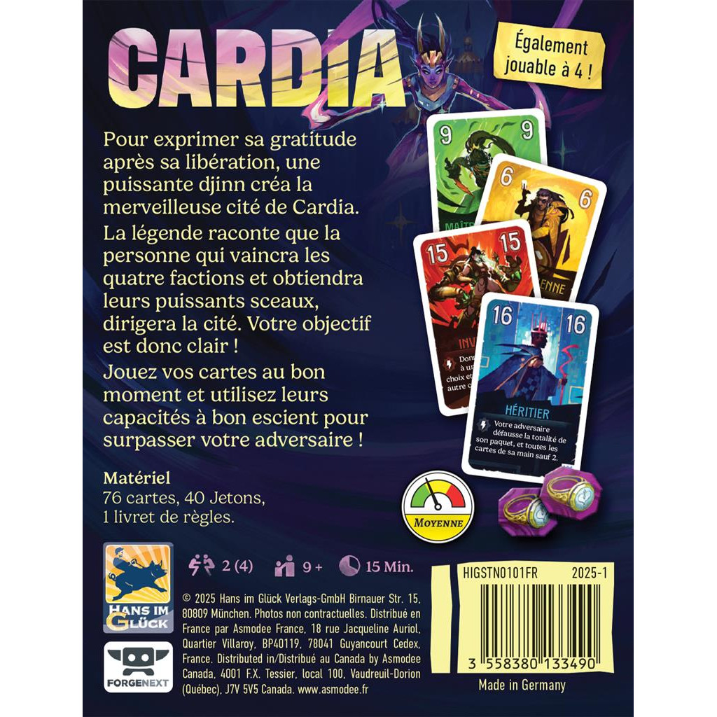 Duel pour Cardia est un jeu de cartes stratégique et rapide pour deux joueurs : choisissez judicieusement vos cartes pour vaincre votre adversaire.