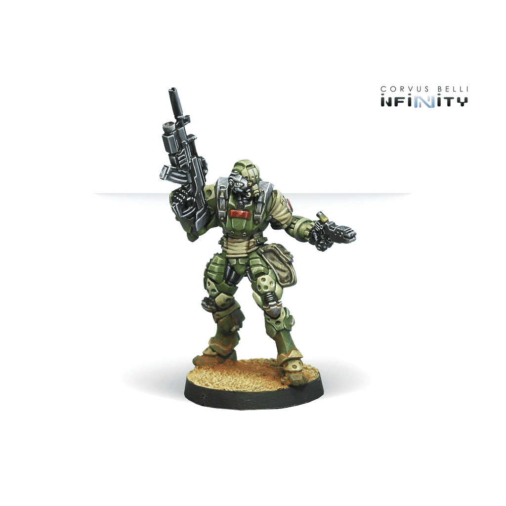 Parfait en tant qu’extension pour tous ceux qui possèdent déjà le Haqqislam Action Pack. Cette boîte propose toutes les options d’armement des Janissaires qui n’avaient pas encore été publiées — les redoutables troupes d’infanterie lourde de Haqqislam. Elle contient trois Janissaires, dont l’un équipé d’un lance-missiles, ainsi qu’un petit mais précieux TinBot.