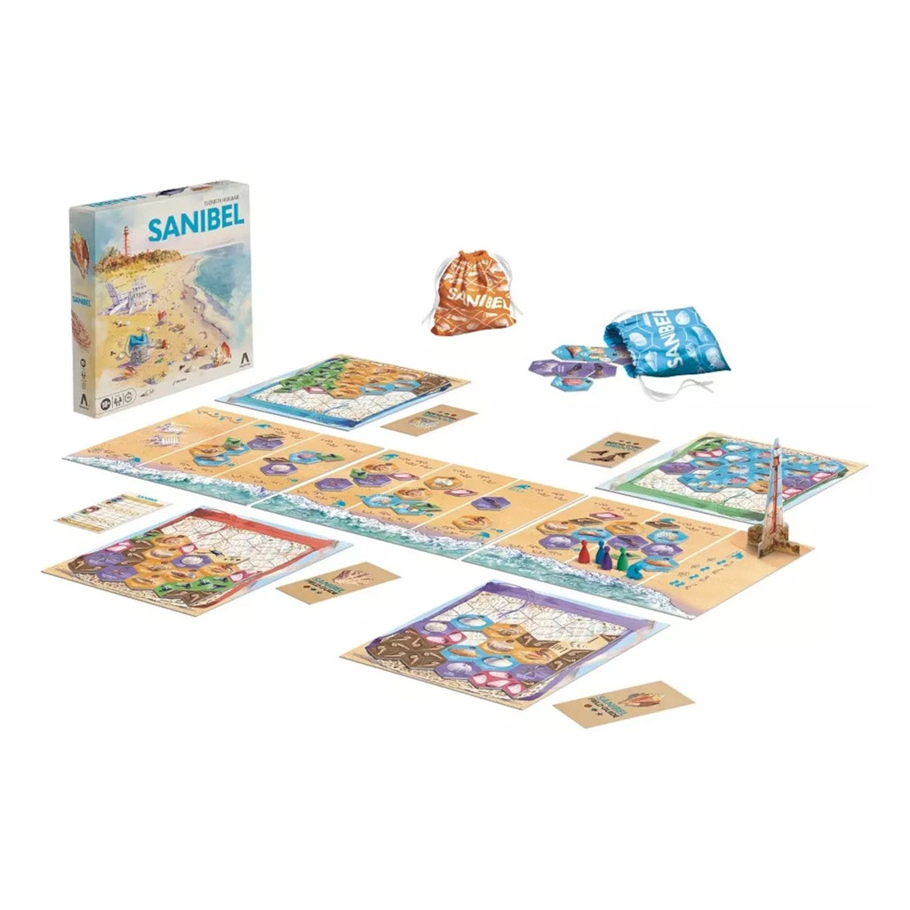 Dans Sanibel, les joueurs parcourent les plages de cette ville insulaire de Floride, ramassent une grande variété de coquillages et les ajoutent soigneusement à leur sac, votre « sac » étant en fait votre plateau de jeu personnel.