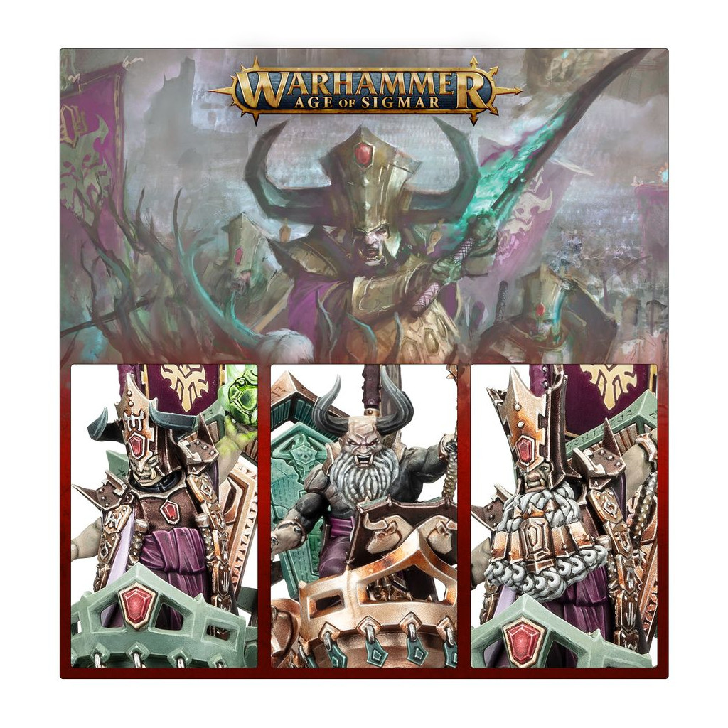 L’on dit qu’Urak Taar est incommensurablement ancien, qu’il a étudié avec Hashut lui-même la manière de soumettre le Chaos, qu’il a conçu plus de machines démons qu’il est capable de s’en souvenir, et que c’est sous son impulsion que la glorieuse Forge Anathème s’est tournée vers l’adoration du Père-taureau. Il aurait dû céder à la malédiction de sarcolithe il y a bien longtemps, mais sa seule volonté et d’occultes secrets en ont repoussé l’échéance. Il cherche désormais rien moins que suivre la voie de son maître et atteindre l’apothéose. Juché sur le Taurus Ghorrakos au corps de bronze, il manie les flammes de la ruine sans peur, tout en soumettant ses ennemis à une once de sa propre terrible malédiction.
