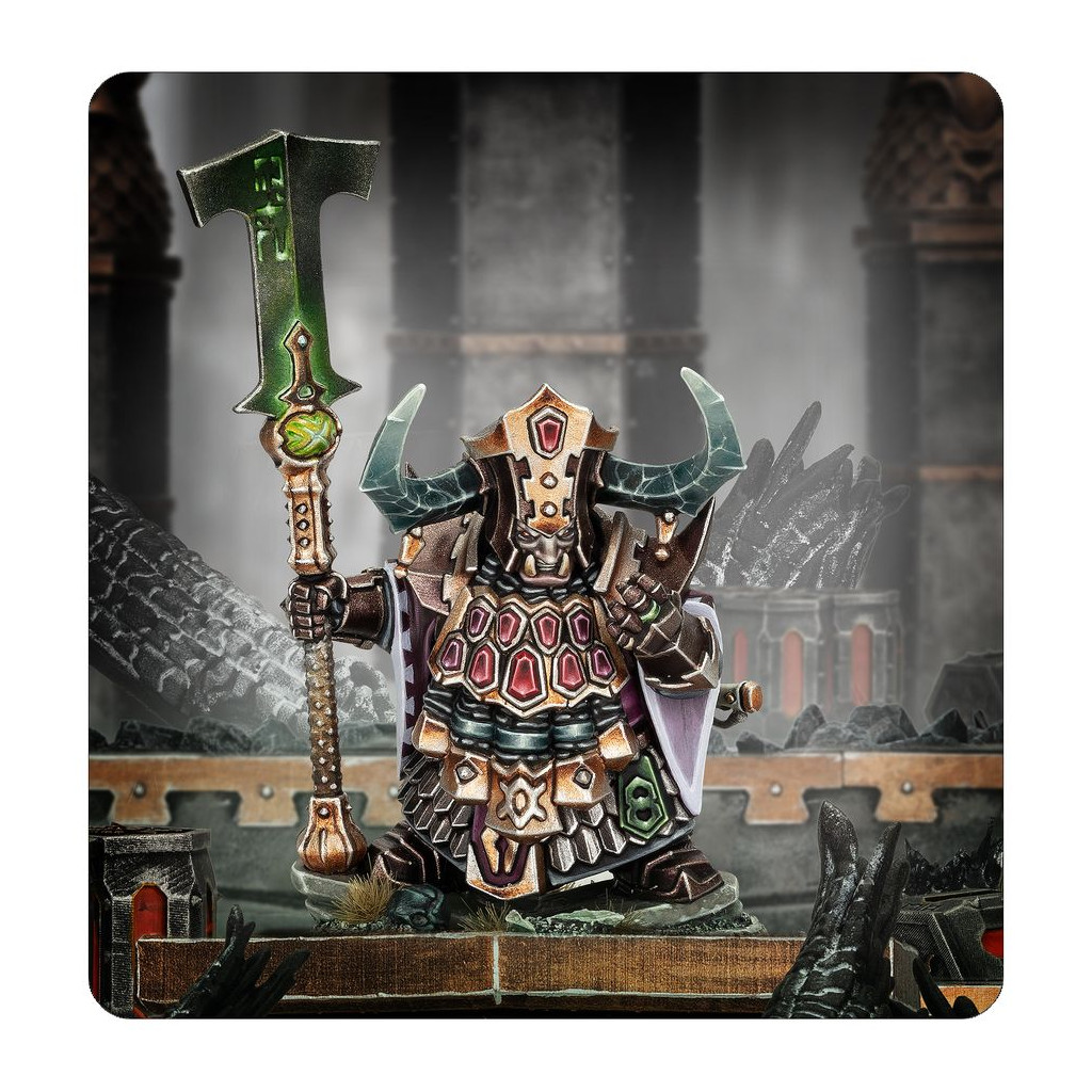 Une figurine en plastique pour Warhammer Age of Sigmar. Ajoutez un général noble, amer et cruel à votre armée de Forgeruines de Hashut. Taillez-vous un chemin à travers les lignes ennemies avec un vouge imprégné d'énergie démoniaque. Inspirez la gloire à vos troupes avec ce conquérant au cœur noir.