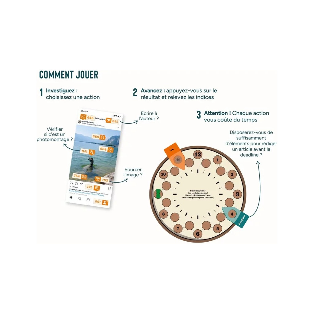 Ce premier jeu d'investigation journalistique vous plonge dans la réalité du terrain pour explorer le métier de journaliste et découvrir les outils de vérification des informations. Imaginées avec la participation de journalistes chevronnés, ces deux enquêtes vous conduisent à démêler le vrai du faux.
