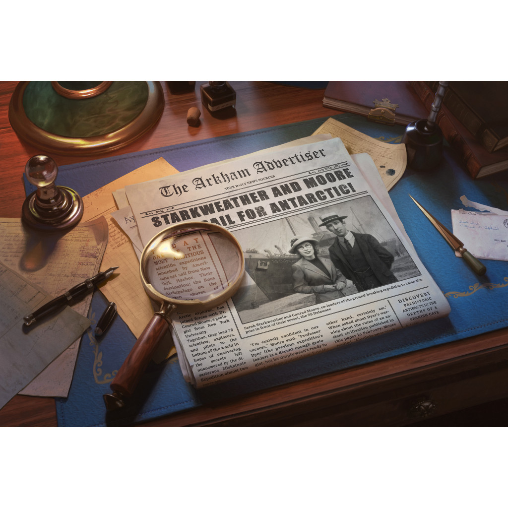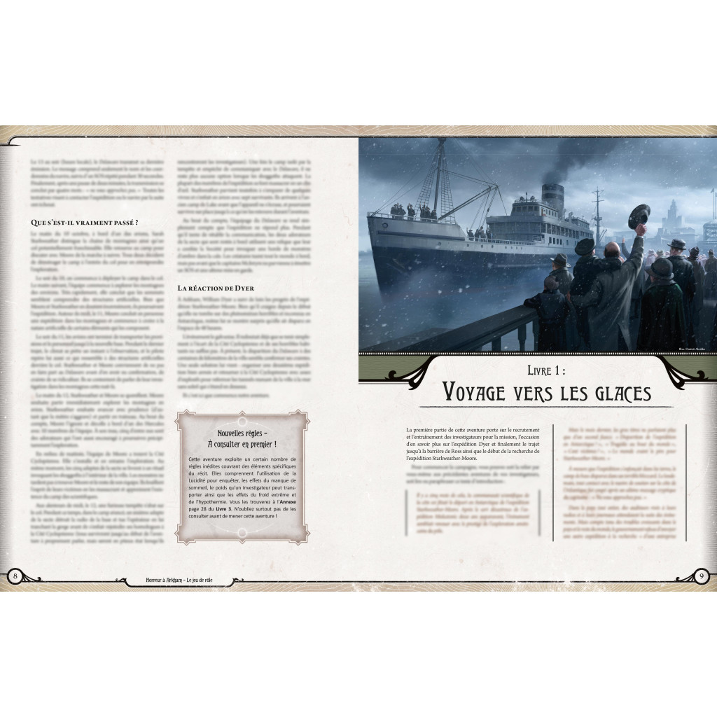 1930, la « Grande Expédition de l’Université Miskatonic » en direction de l’Antarctique se solde par douze décès et des internements parmi les survivants. Deux ans plus tard, une équipe de scientifiques annonce suivre ses traces… Et disparait à son tour. Seules les plus braves parmi les Investigatrices et Investigateurs peuvent lever le mystère autour de ces catastrophes. À l’ombre de la plus vaste chaîne montagneuse jamais découverte, un zoologiste chevronné pourrait faire bien des découvertes dérangeantes… Tant que sa collègue trappeuse le couvre avec son fusil Remington M10 !