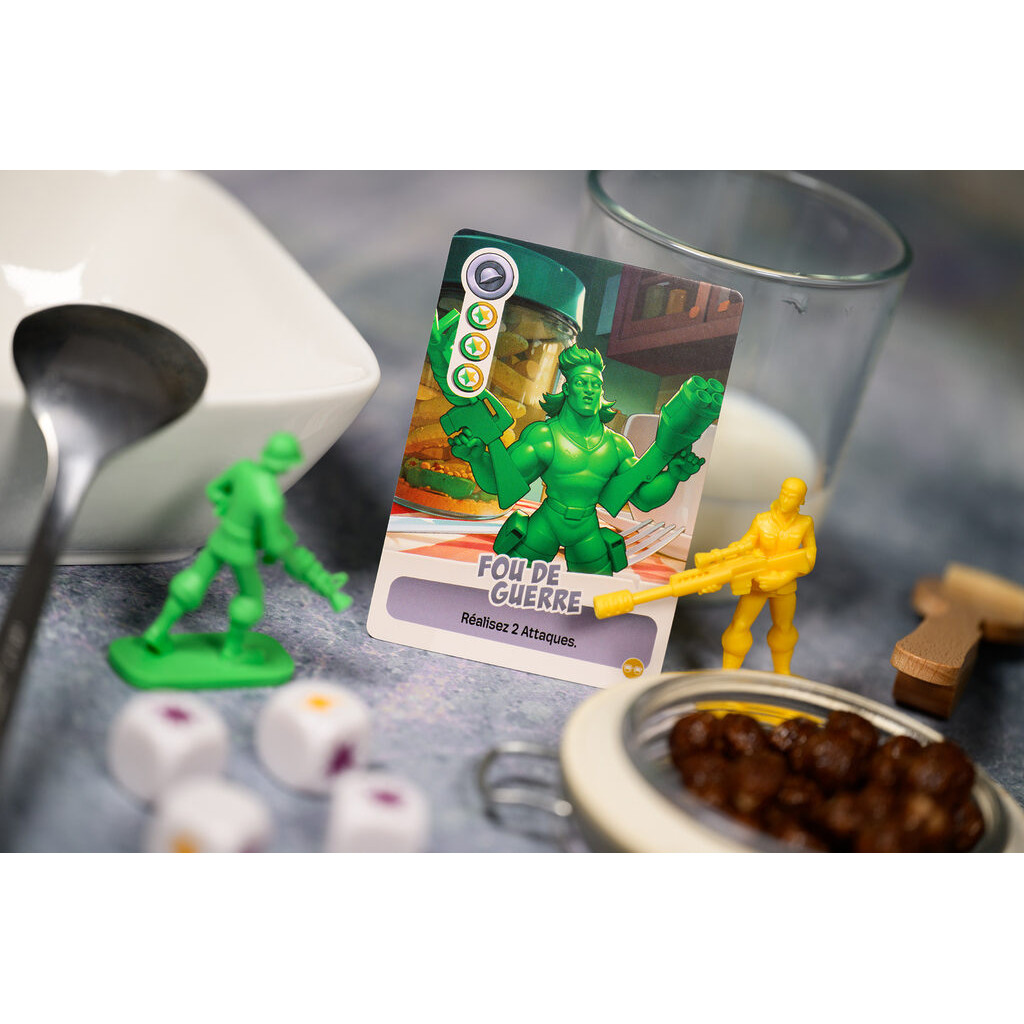 Dans Petits Soldats, on ressort nos jouets en plastique pour livrer des affrontements épiques… au milieu des tasses et des bouteilles de lait !