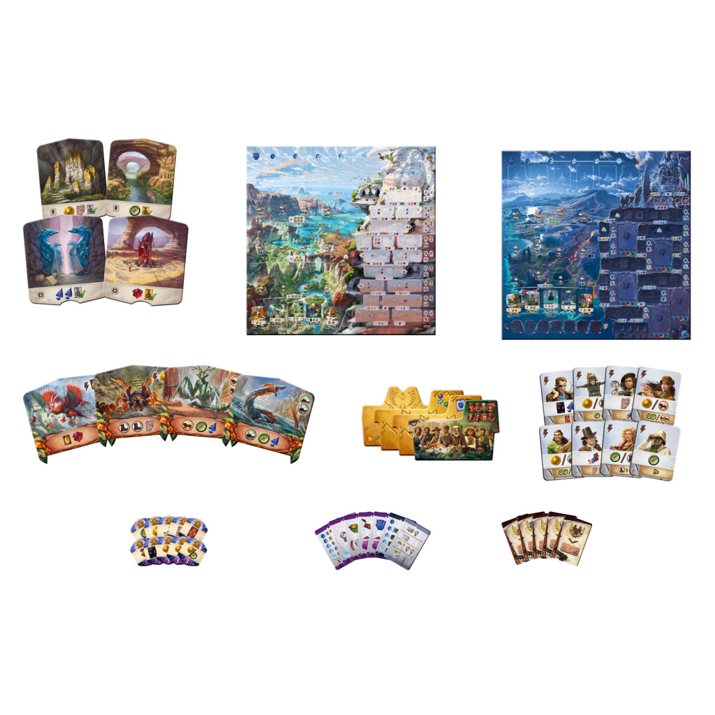- 1 nouveau plateau recto-verso, chacun avec sa propre piste de recherche unique et de nouveaux éléments (tablettes sombres, nouvelles tuiles de temple, etc.)