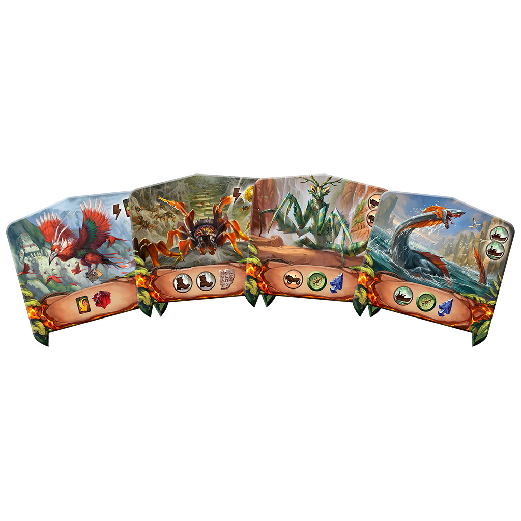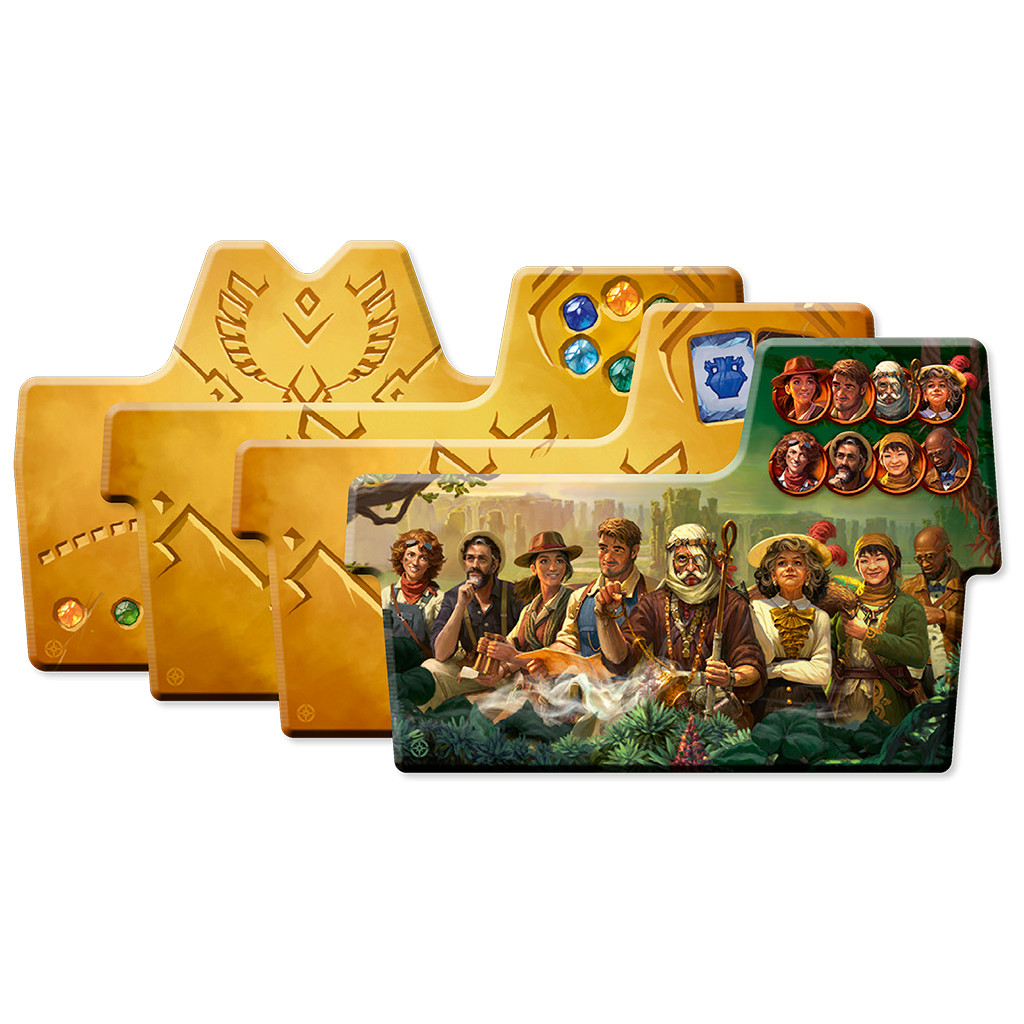 Sur la face diurne, explorez le Temple du Hibou et profitez de nouveaux emplacements d’idoles ainsi que d’un troisième jeton de recherche, la lanterne, pour obtenir de meilleures récompenses. Sur la face nocturne, aventurez-vous dans le Temple de l’Araignée, qui ajoute une nouvelle ressource, les tablettes obscures, permettant d’invoquer des autels mystérieux et de placer des artefacts directement sur la piste de recherche.