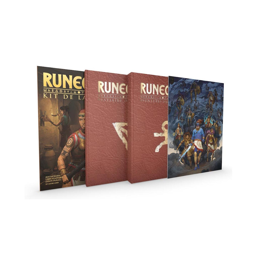 - Le livre de base (collector): comprend le système de création de personnage, la descriptions des divinités majeurs, le guide des runes et toutes les règles nécessaires pour jouer.