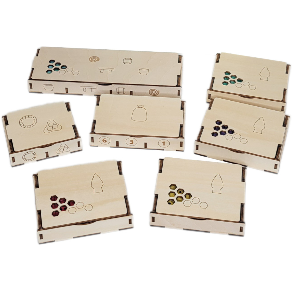 - 4 Boites joueurs pour rangement éléments joueur (Dés, Menhirs, Stèle,,...)