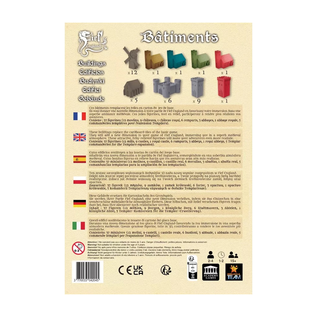 Contenu : 12 moulins, 9 châteaux, 1 château royal, 6 remparts, 3 abbayes, 1 abbaye royale, 5 commanderies templières pour l'extension Templiers.