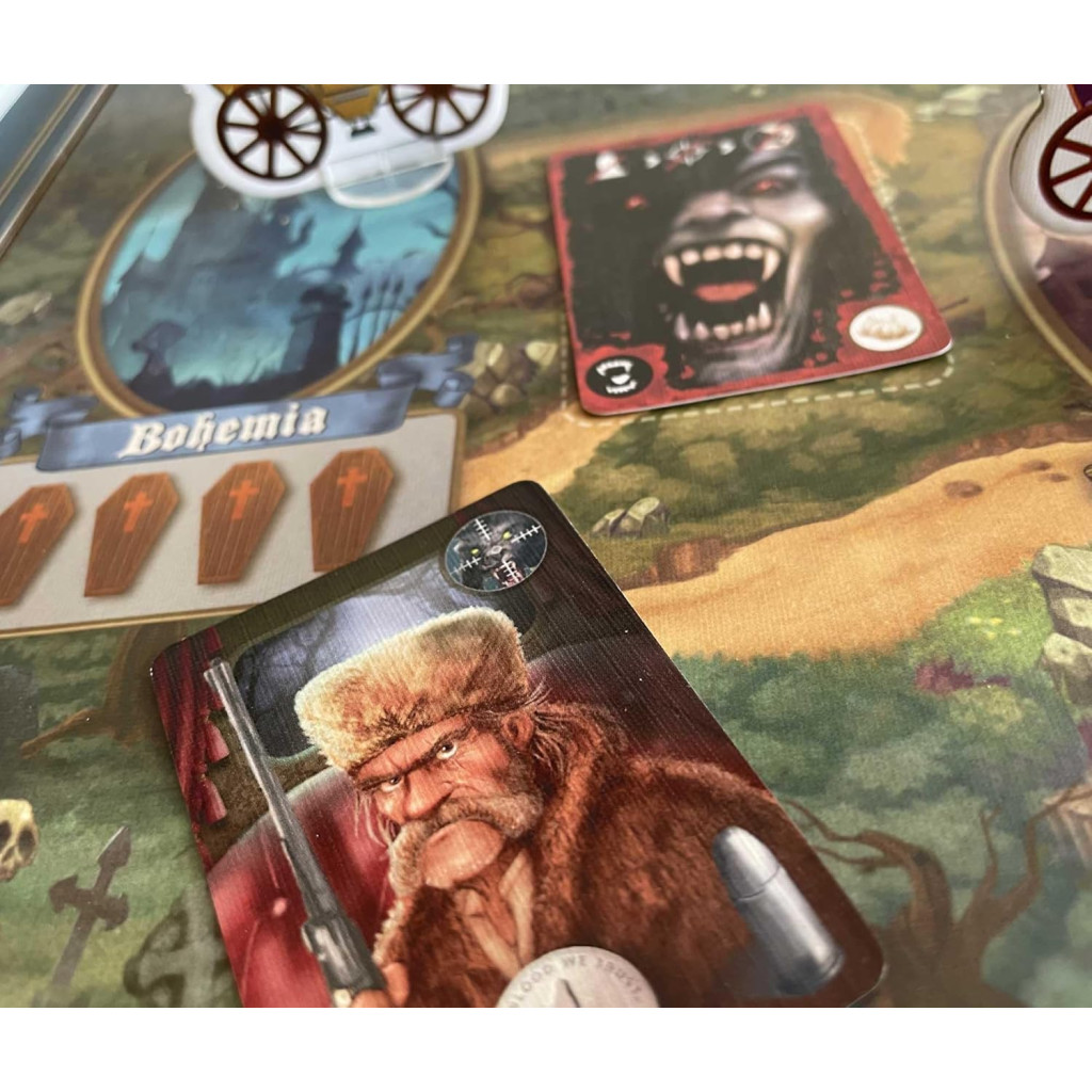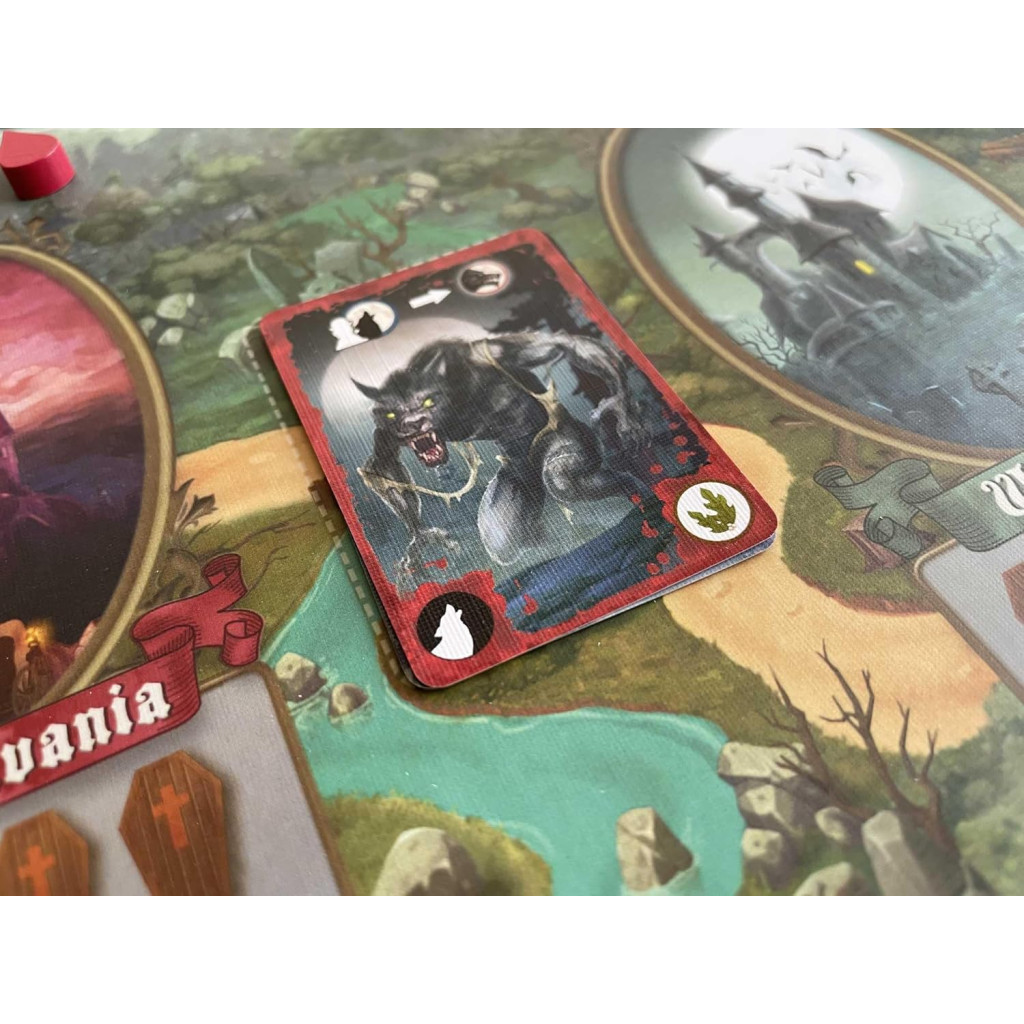 Lorsque le comte Dracula apparaît (fin du tour), les loups-garous et les vampires se nourrissent des voyageurs innocents. Plus il y a de jetons de sang dans une région, plus il y aura de nourriture pour les vampires et plus vous gagnerez de points de victoire (vous ne gagnez des points que pour les cercueils de votre propre couleur).