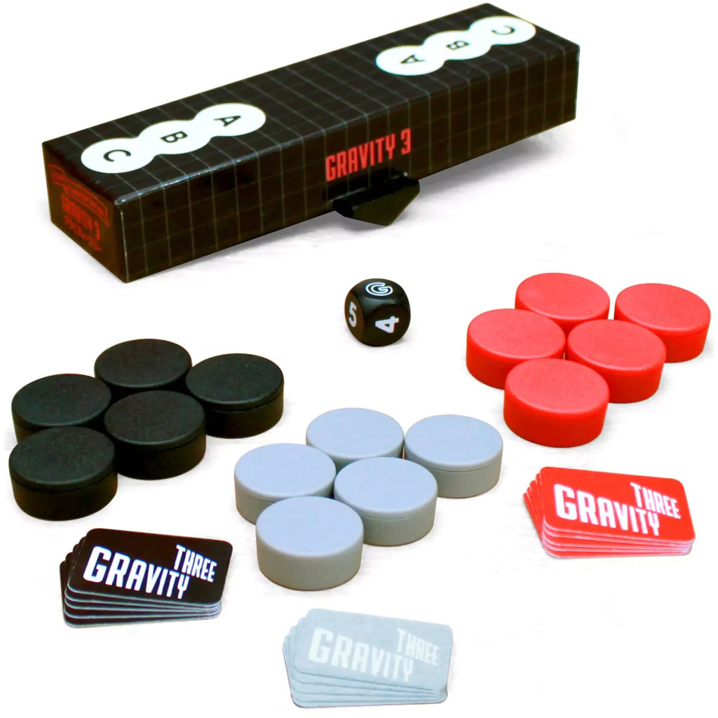 Doute × Gravité - Bluffez vos adversaires pour vous débarrasser de tous vos poids. Lancez les dés pour déterminer le nombre cible. Les joueurs peuvent jouer pour ajouter leurs poids « nombre cible » dans la tour centrale ou passer. Serez-vous assez courageux pour démasquer les bluffs de vos adversaires ?