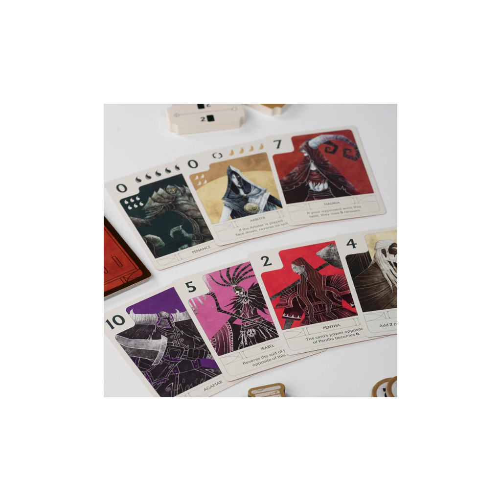 Dissimulez vos intentions grâce à une carte face cachée par ligne. Utilisez vos pouvoirs divins au moment opportun pour prendre l’avantage.