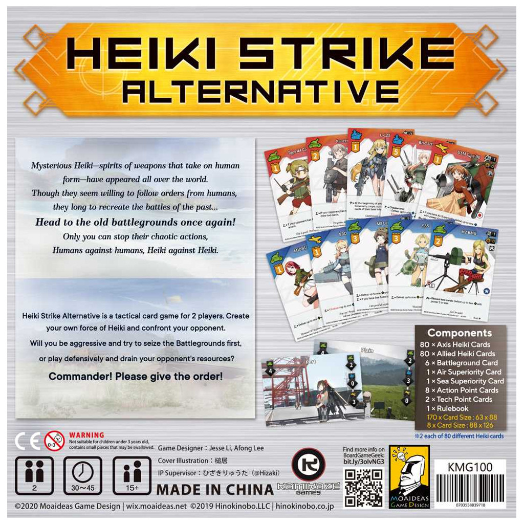 Dans Heiki Strike Alternative, les deux joueurs construisent chacun leur propre deck à partir des cartes incluses dans la boîte, puis déploient leurs princesses et leurs armes anthropomorphes dans les zones aériennes et maritimes afin de prendre le contrôle des champs de bataille.