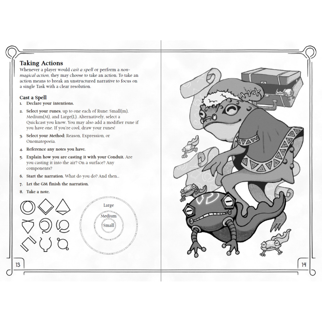 Runecaster est un jeu de rôle narratif pour 2 à 5 joueurs et un MJ, centré sur l’apprentissage de la magie par l’échec spectaculaire. Incarnez des mages débutants qui lancent des sorts uniques en combinant des runes. La magie est pleine de conséquences inattendues et de nouvelles découvertes. Elle explosera tout autant au visage des personnages qu’elle illuminera leur chemin.