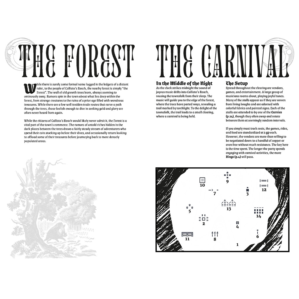 Cairnevale est un festival forestier fantastique destiné à être utilisé avec Cairn, adapté à des aventuriers de toute expérience. Amusez vos joueuses et joueurs grâce à une variété de jeux et de réjouissances, mais sous cette ambiance festive se cache une intrigue en spirale qui mènera vos héros face à des ennemis féeriques.